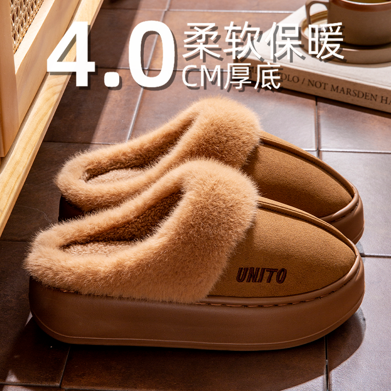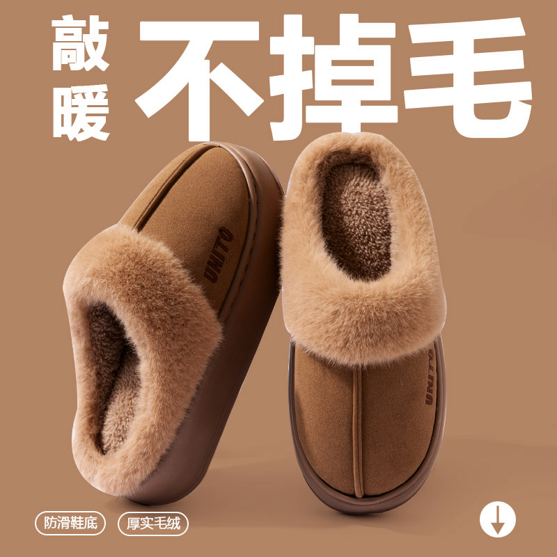 棉拖鞋女士冬季2025新款室内家居加绒防滑厚底保暖毛毛绒棉拖女款