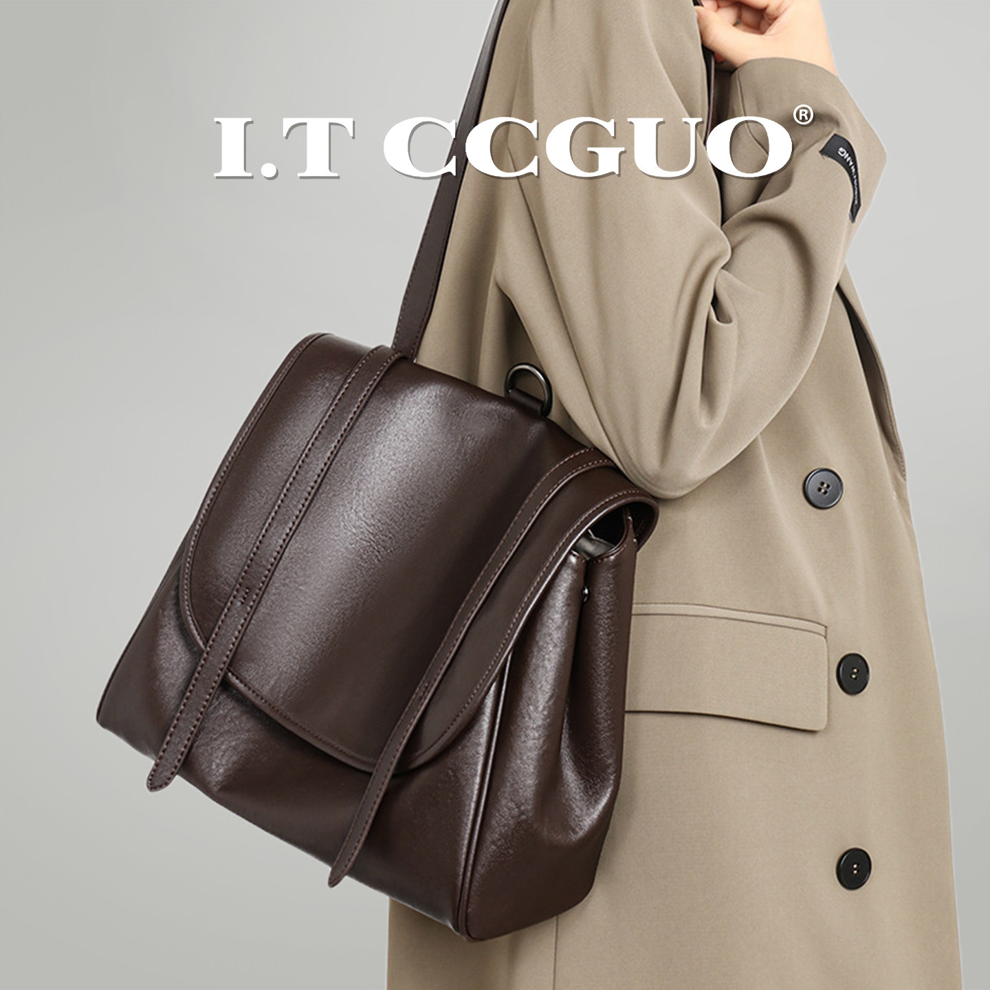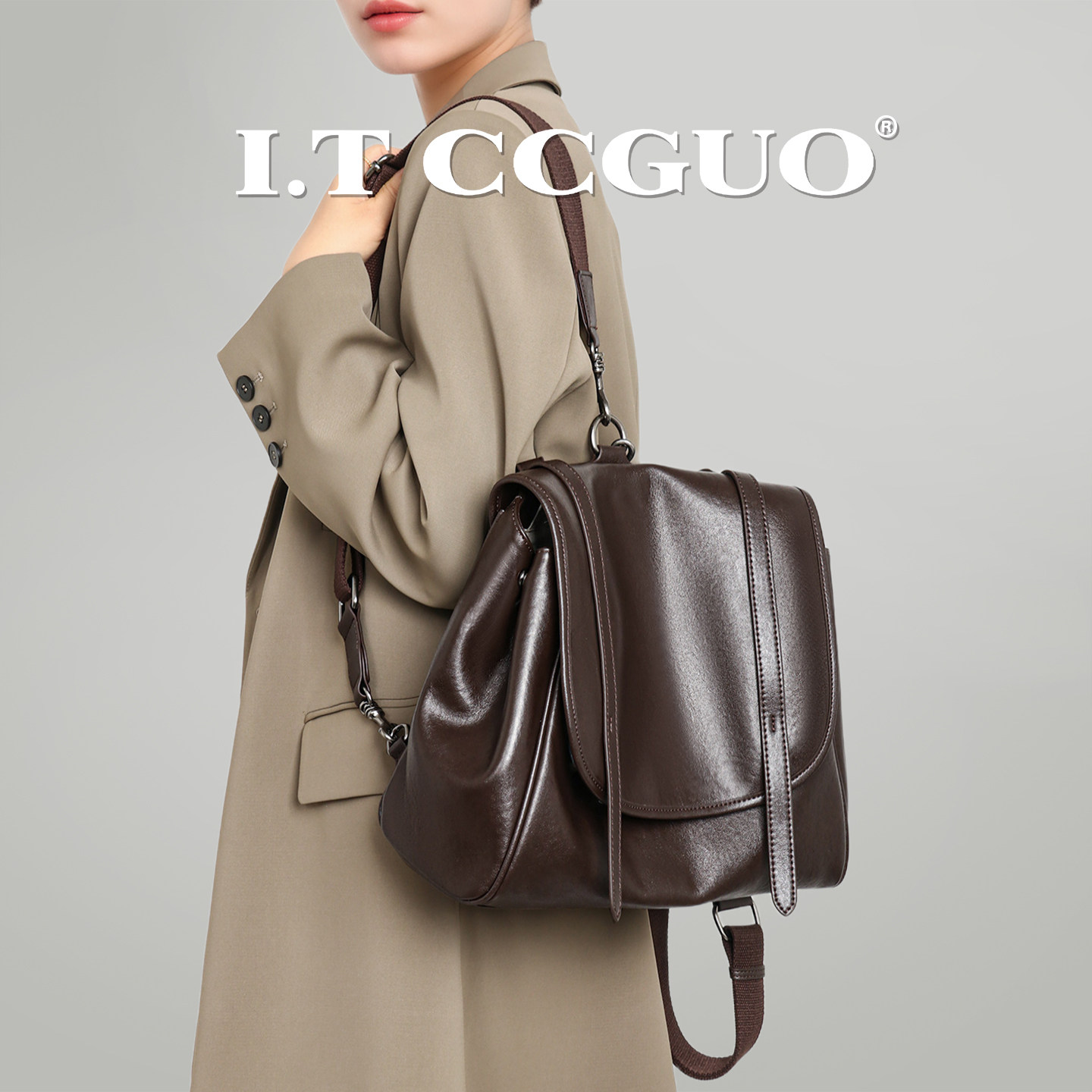 I.TCCGUO头层牛皮双肩包女多功能单肩包欧美真皮女包通勤斜跨女包