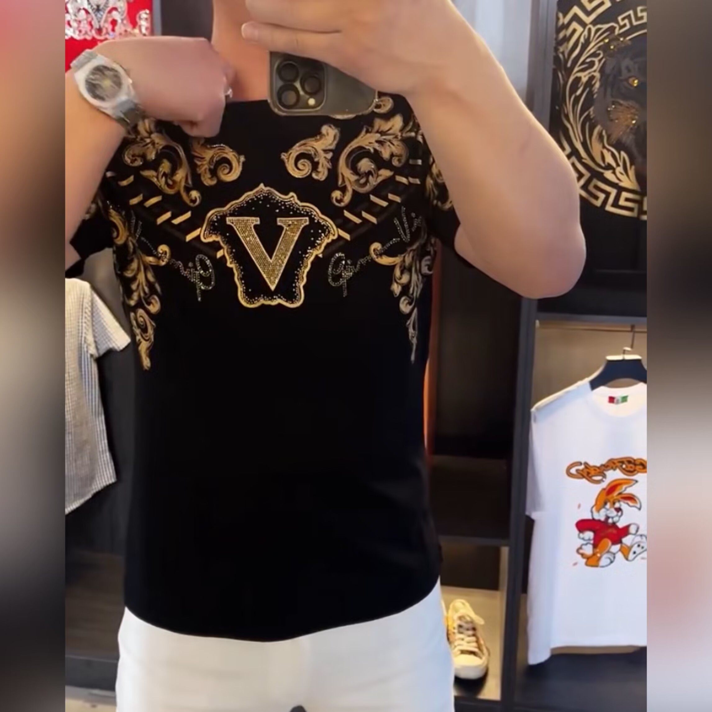 高端烫钻印花潮流修身舒适半袖