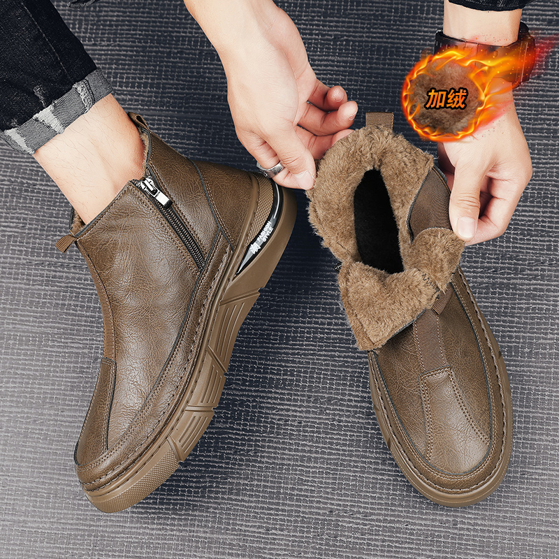 马丁靴男士冬季加绒保暖棉鞋一脚蹬高帮皮鞋防水防滑劳保工装短靴