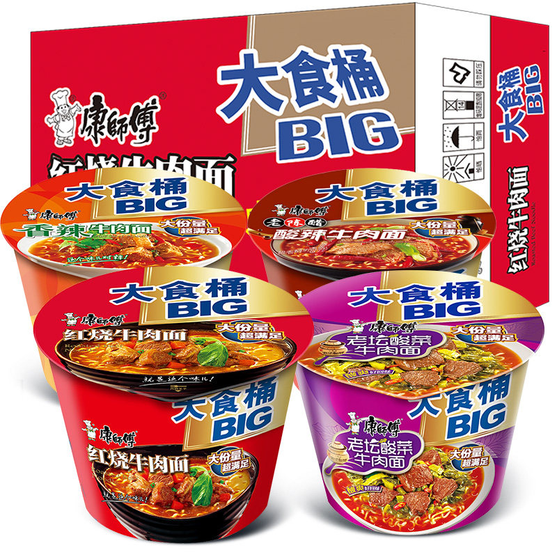 康师傅大食桶方便面整箱泡面批发big红烧香辣牛肉面速食品旗舰店