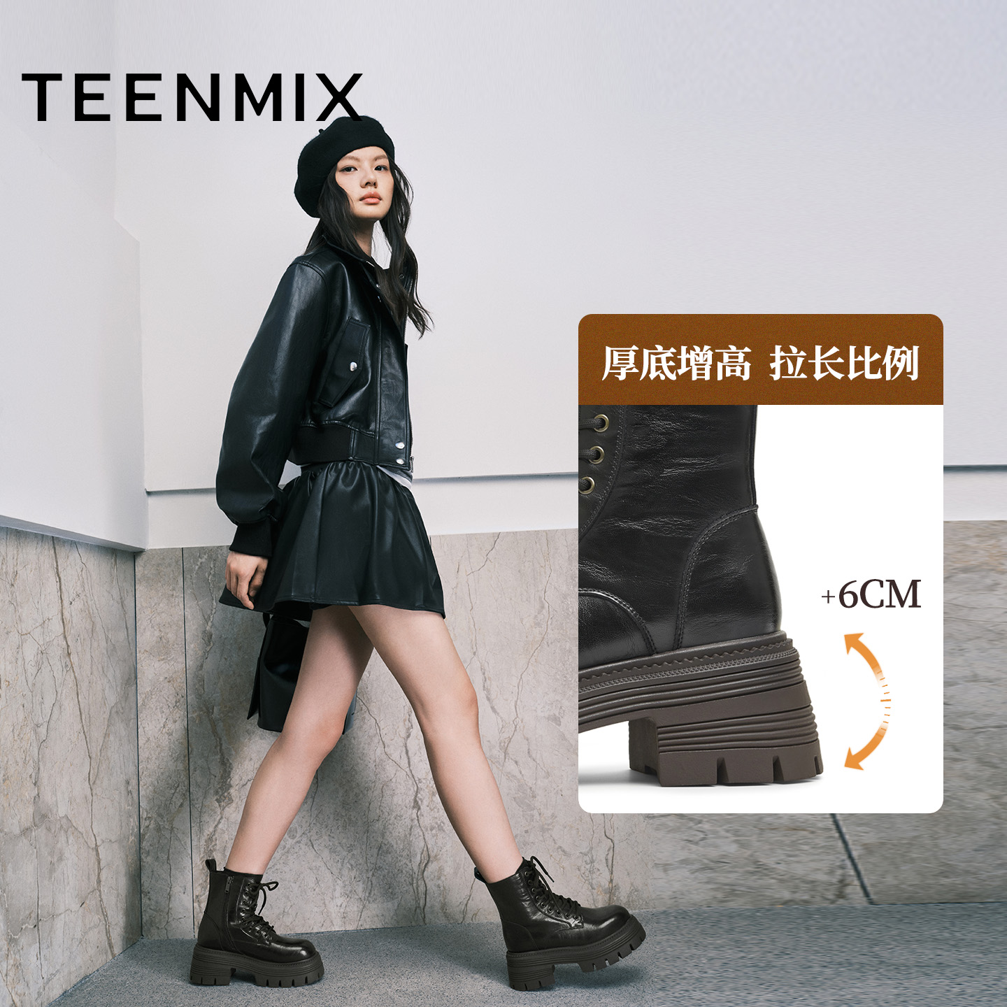 天美意复古英伦厚底增高加绒马丁靴女鞋子休闲短靴皮靴2025冬新款