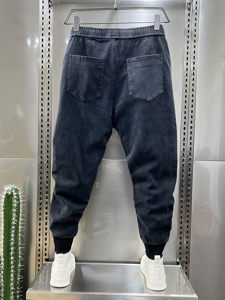 秋冬款牛仔裤男士休闲裤潮流百搭黑色束脚痞帅工装裤哈伦宽松裤子
