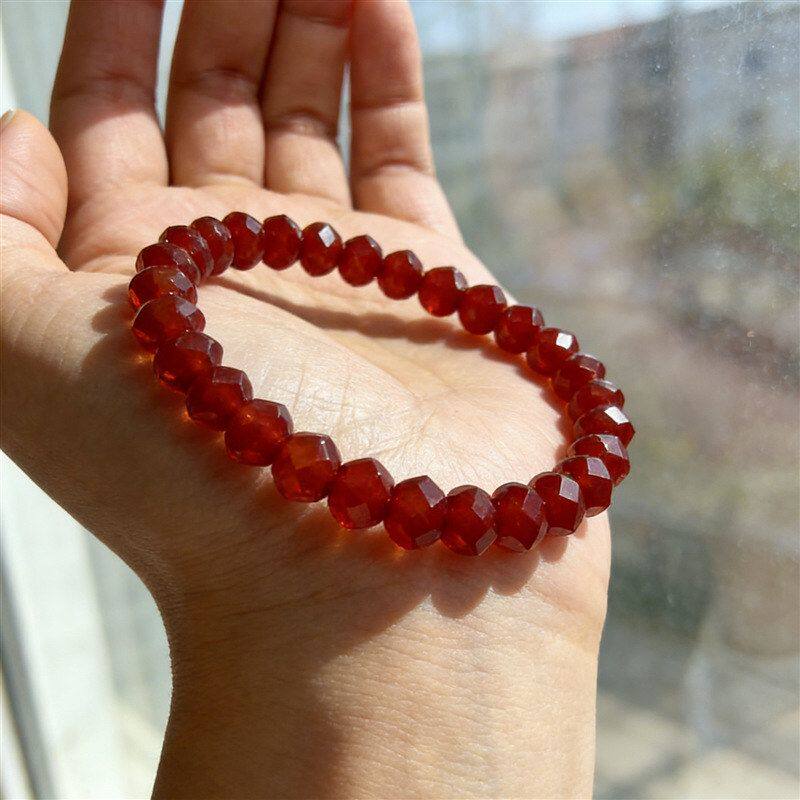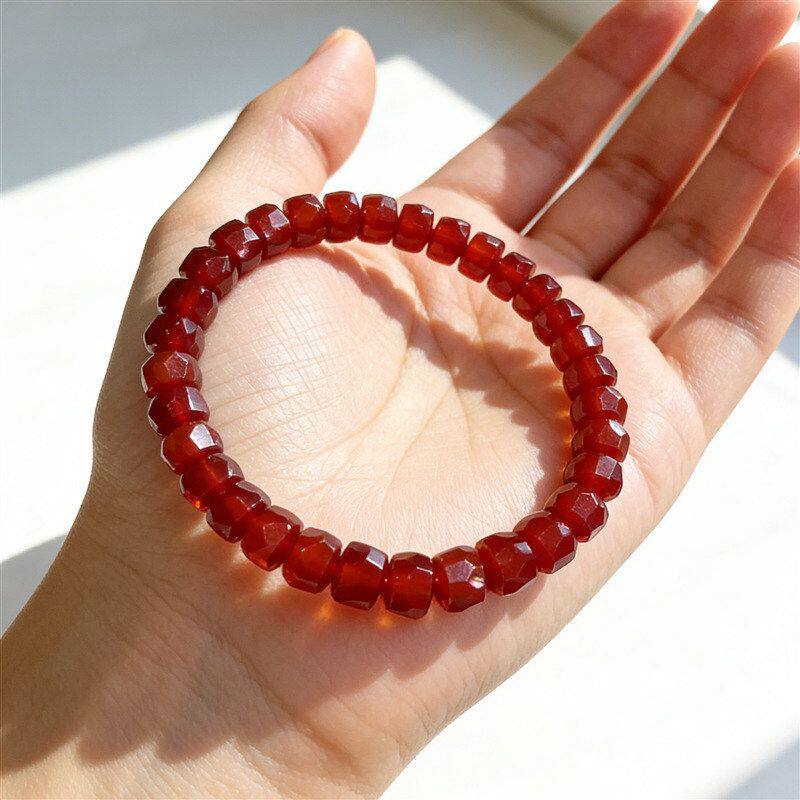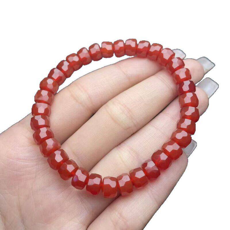 天然红玛瑙切面盘珠手链时尚钻石面老型珠手串绿玛瑙四面来财手链