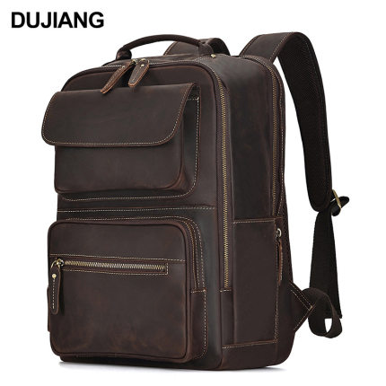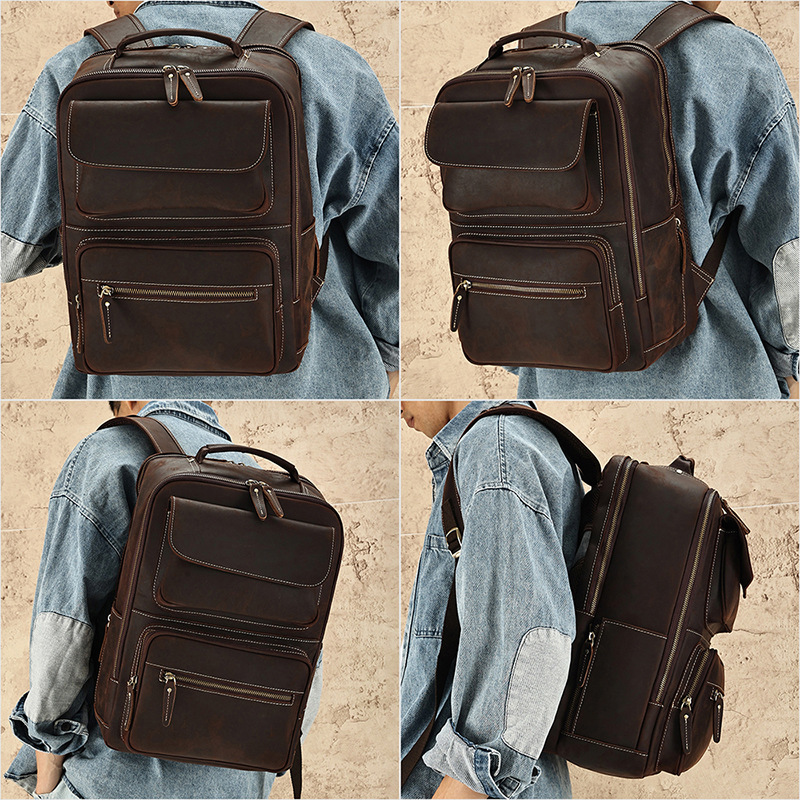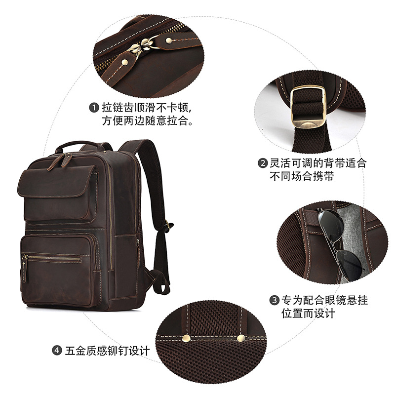 复古疯马皮男士双肩包真皮背包电脑包牛皮大容量旅行包手工商务包