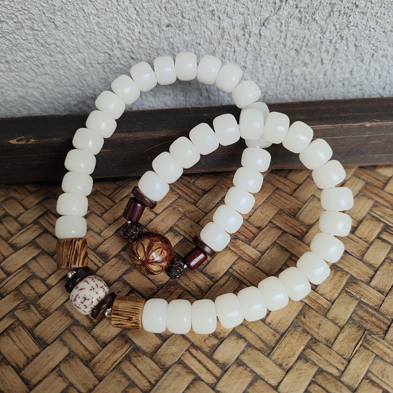 白玉菩提子佛珠手串金攀莲复古风