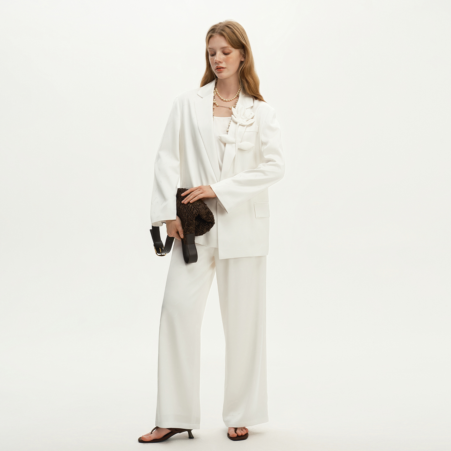 艺之卉醋酸提花新中式老钱风白色优雅阔腿裤西装裤2025秋新款