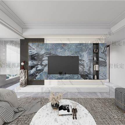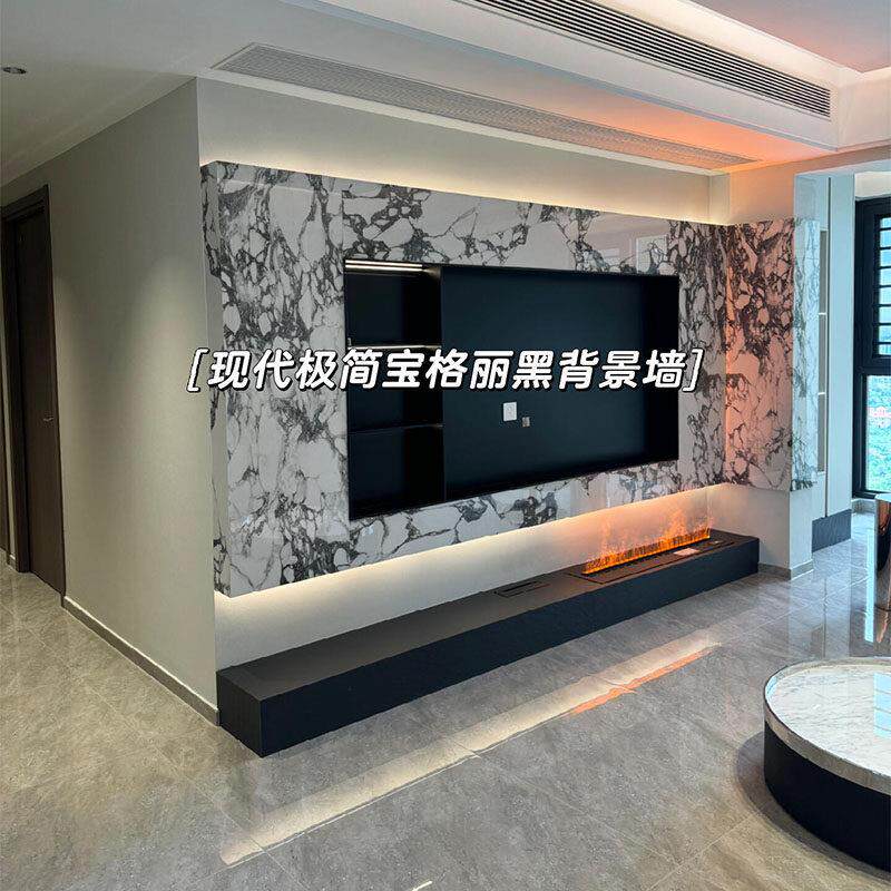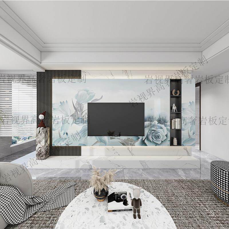 岩板电视背景墙轻奢高级感2025悬浮款瓷砖大理石奢石悬空现代客厅