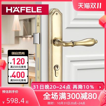 德国海福乐HAFELE门把手室内执手锁铜合金卧室门锁具铜制房门锁