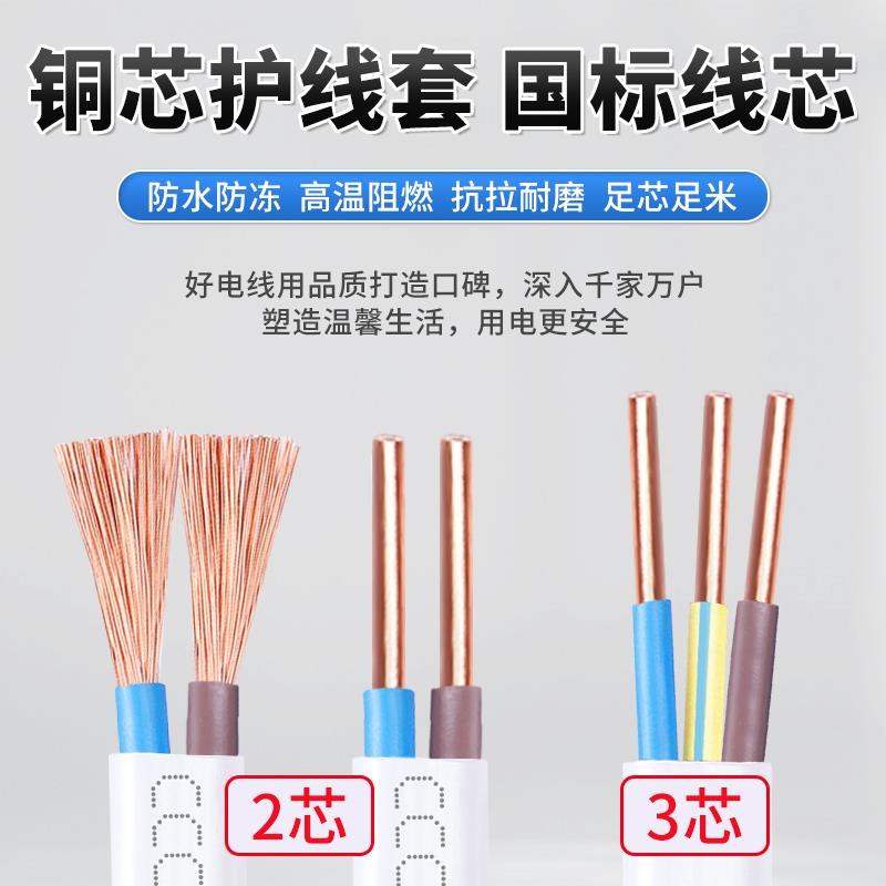 国标纯铜电线2.5平方铜芯家用护套线2芯1.5 4 6家装电源软线电缆