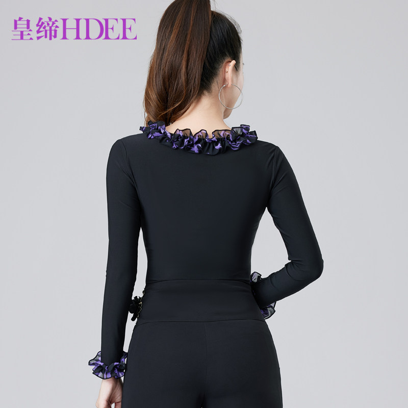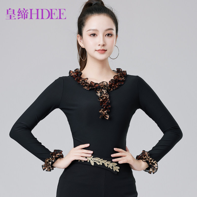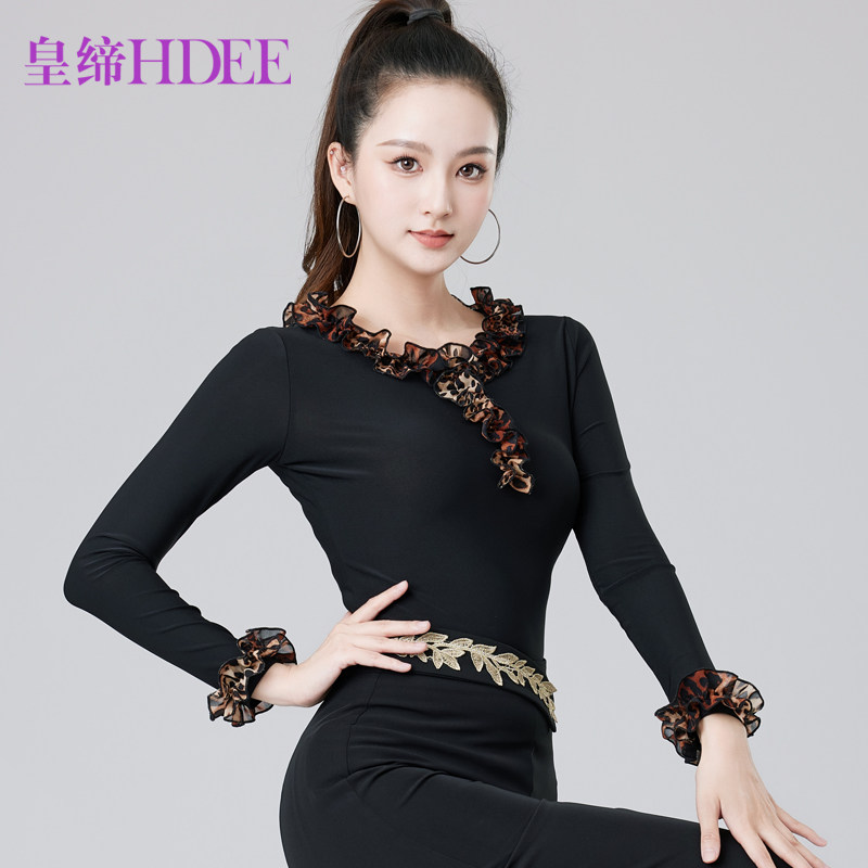 皇缔 拉丁舞新款女成人秋冬款上衣摩登舞演出国标舞吉特巴练习服