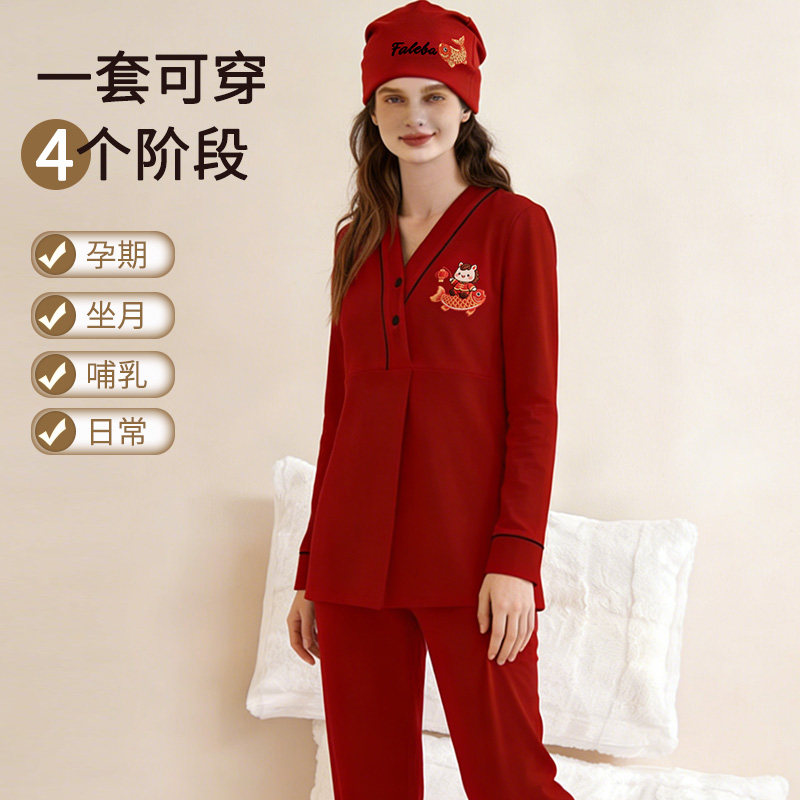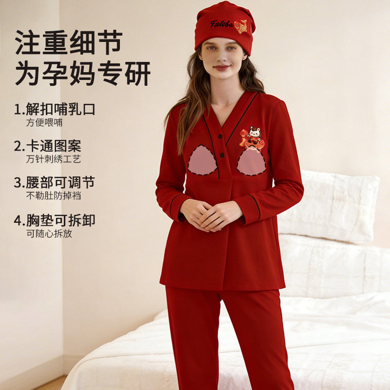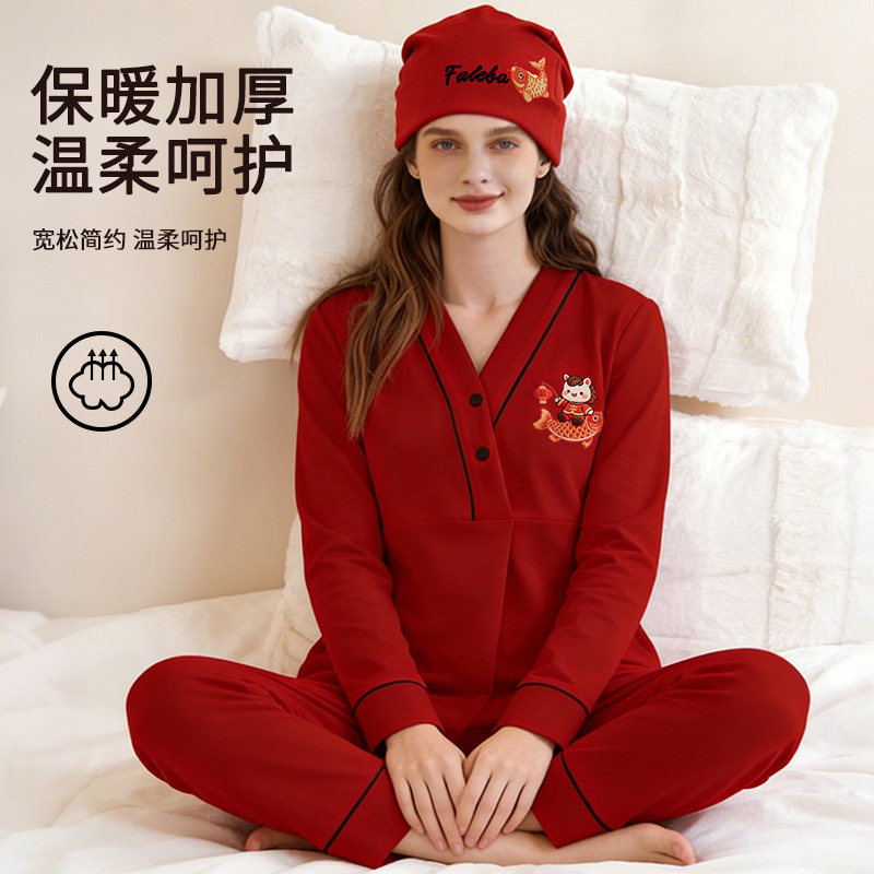 带胸垫纯棉月子服秋冬季孕妇哺乳睡衣产后喂奶产妇家居服外穿厚款