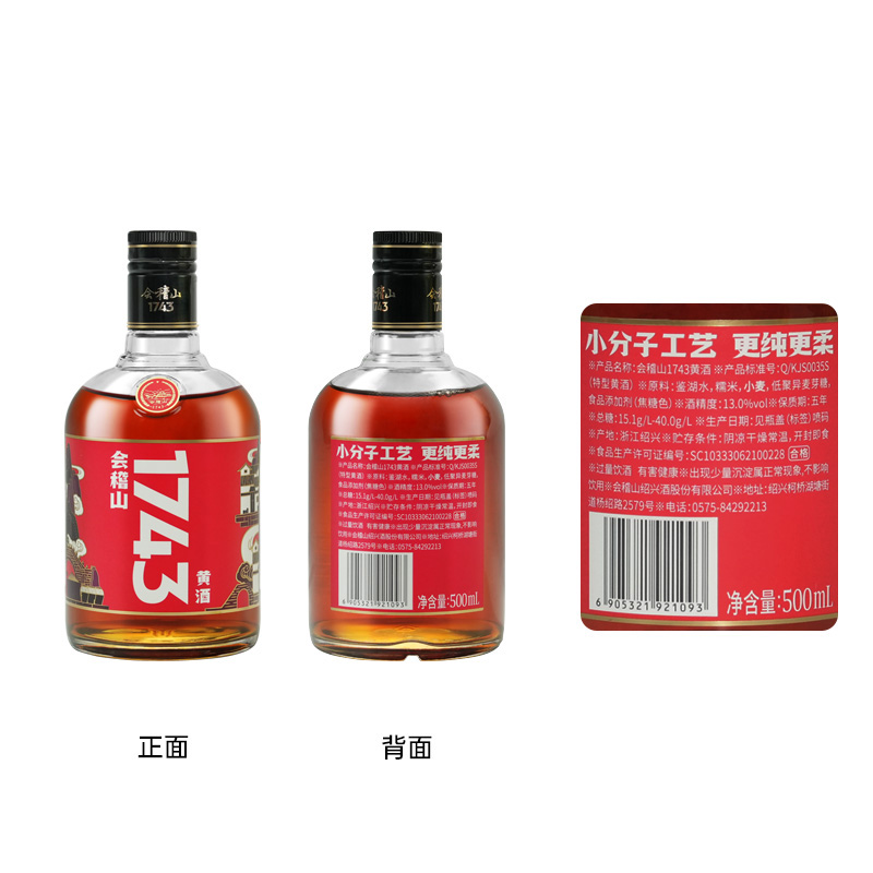 会稽山1743绍兴老酒500ml*6瓶整箱装黄酒
