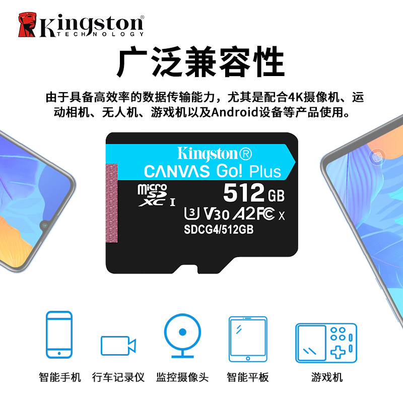 大疆osmo360配件高速内存卡金士顿 Canvas Go!Plus microSD 卡 128GB/256GB/512GB