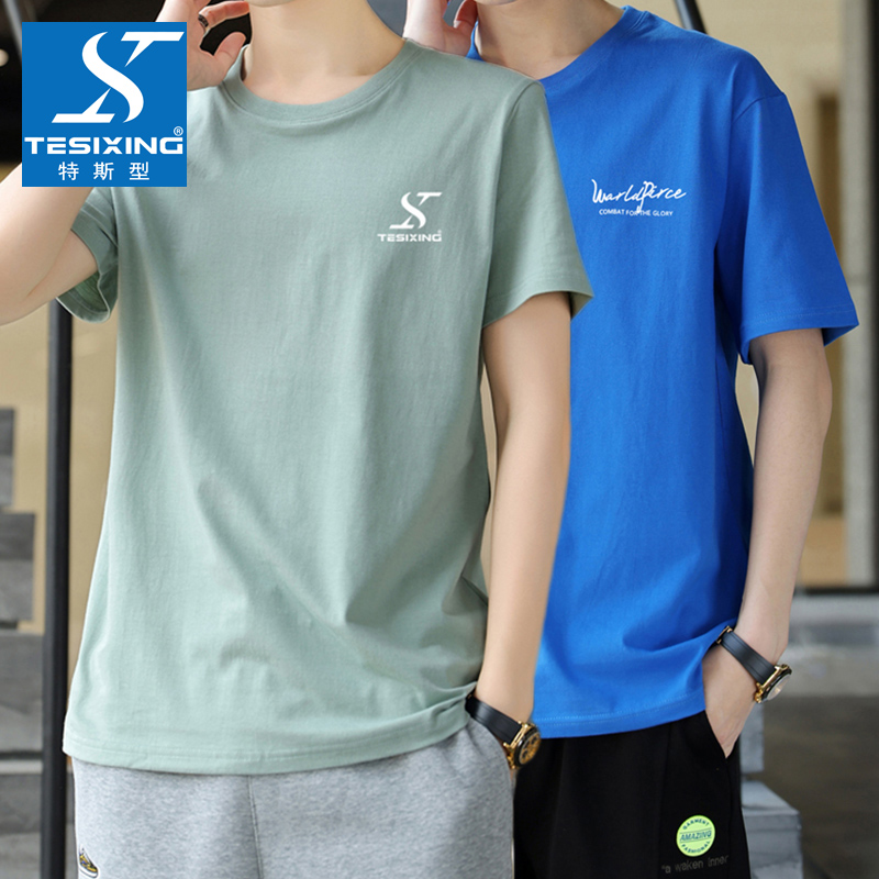以纯YISHION短袖t恤男士纯棉休闲夏季体恤上衣青少年宽松圆领半袖