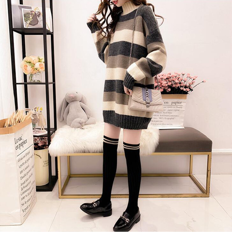 加厚毛衣女秋冬宽松中长款套头半高领针织衫时尚百搭打底裙外套潮