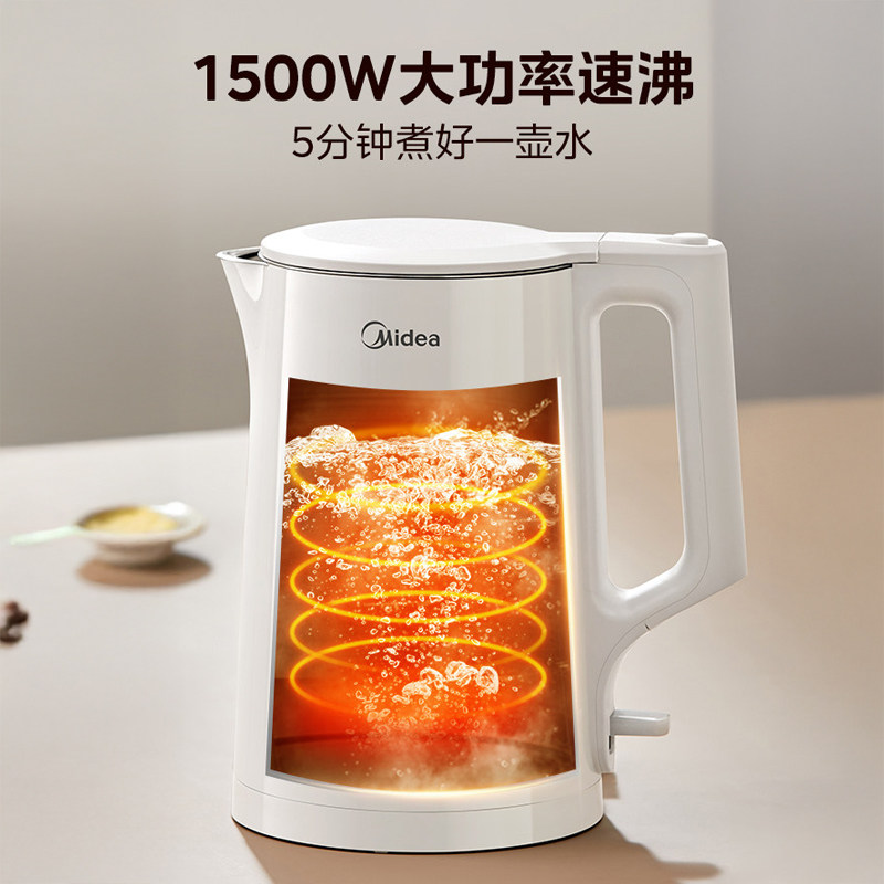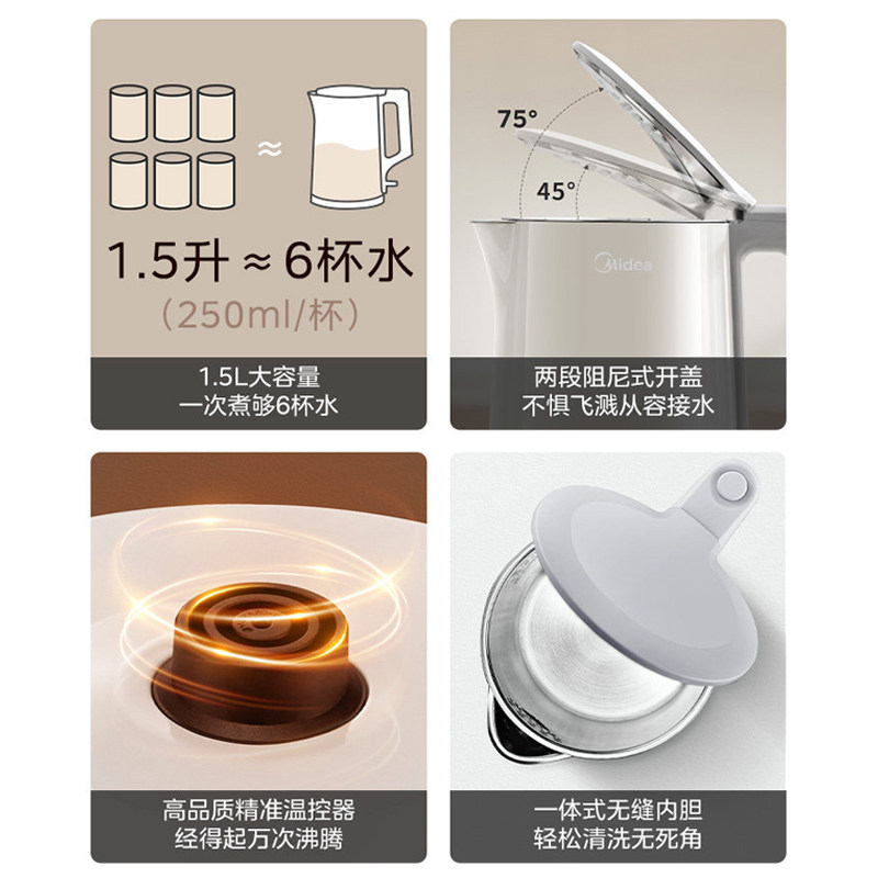 美的电热水壶烧水壶新款家用一体电水壶开水壶不锈钢内胆