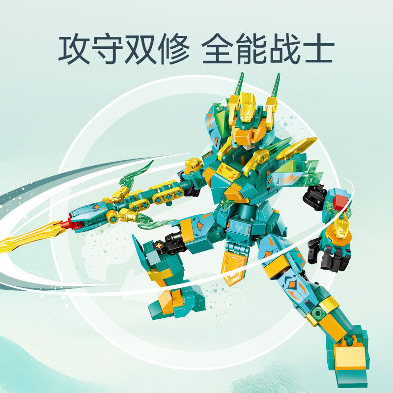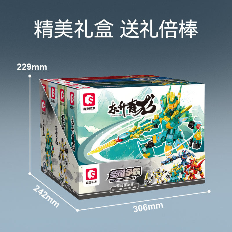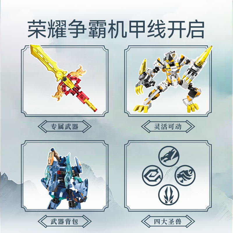 森宝积木荣耀争霸Q版神兽青龙白虎机甲铠甲模型拼装玩具儿童礼物