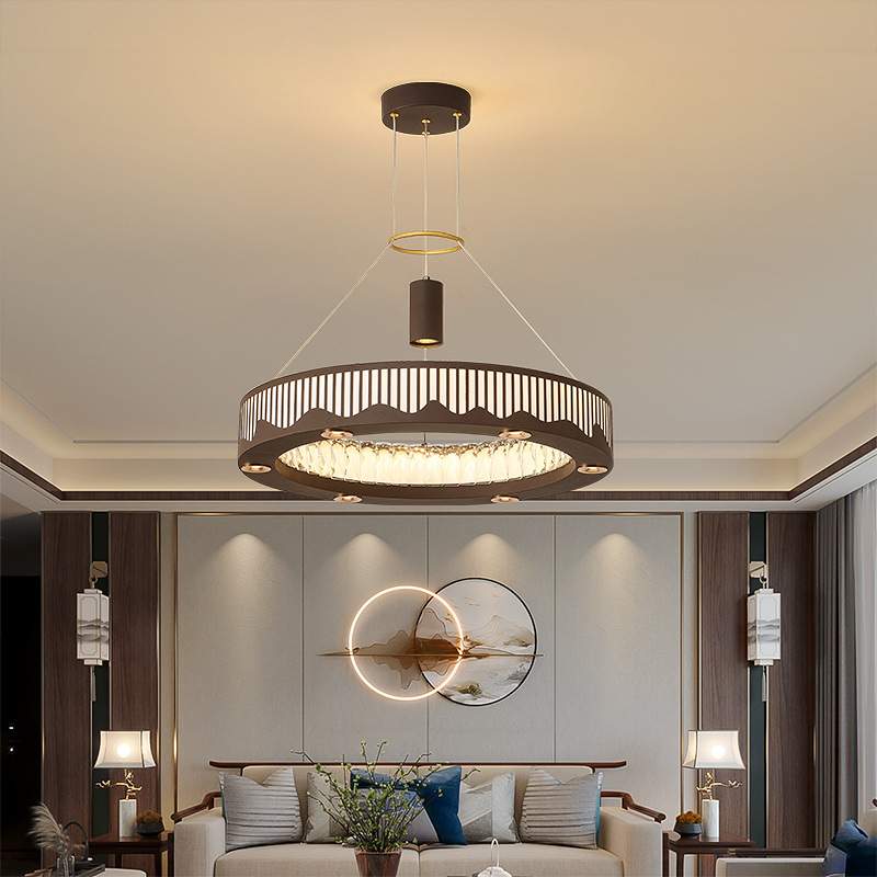 新中式吊灯铁艺圆形简约现代餐厅饭店包间火锅店包厢灯餐桌灯具