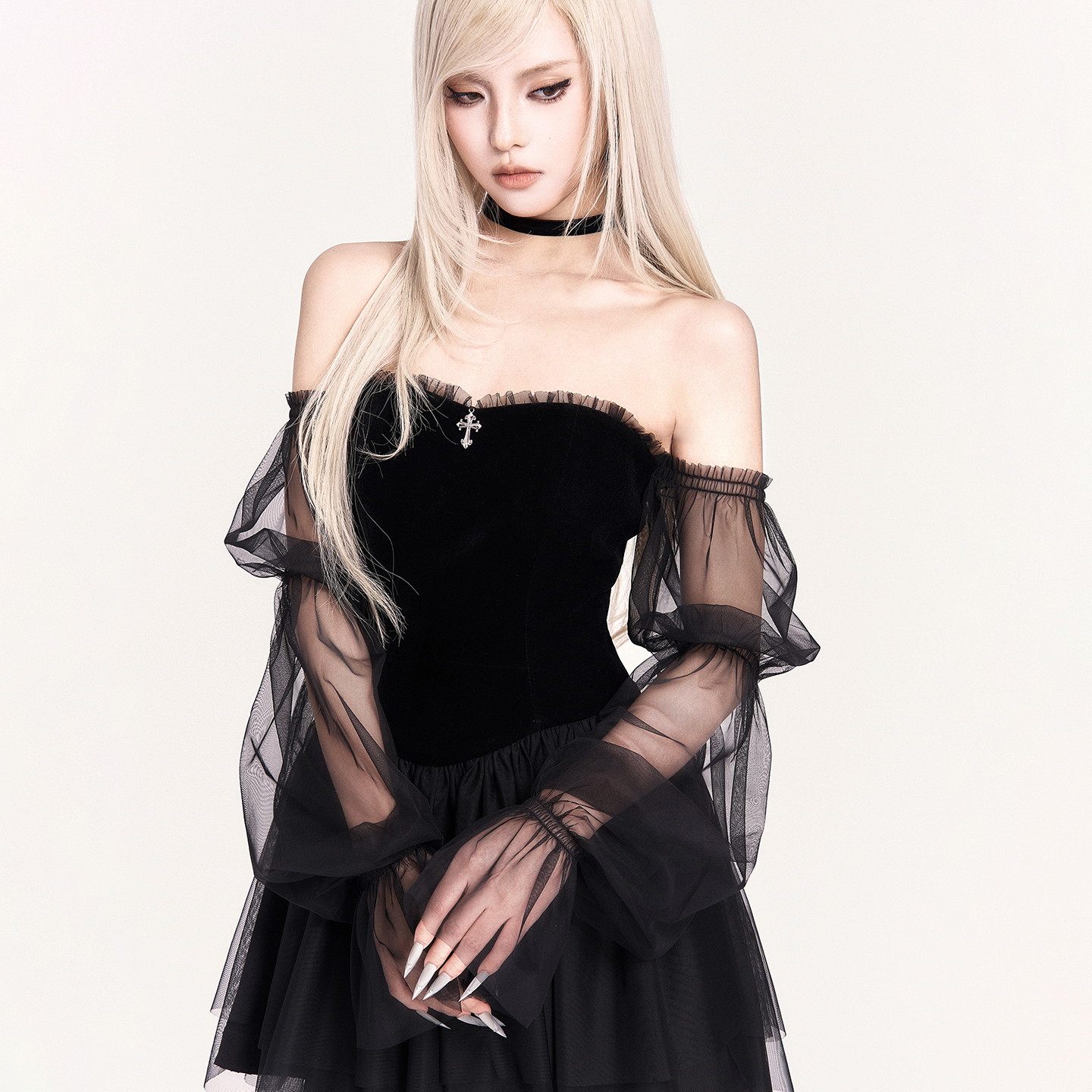 VOCK 夜幕天使 暗黑丝绒设计感气质收腰显瘦连衣裙精致礼服小黑裙