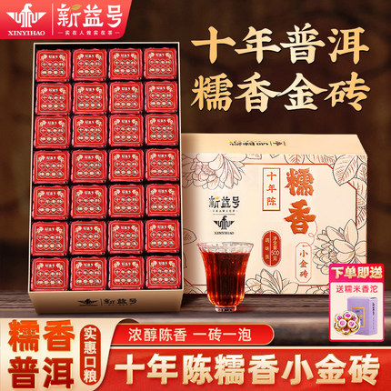 新益号糯米香普洱茶熟茶十年以上云南古树茶小金砖口粮茶叶自己喝