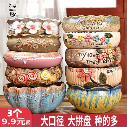 大号多肉花盆陶瓷大花盆简约大口径粗陶多肉植物拼盘组合花盆清仓