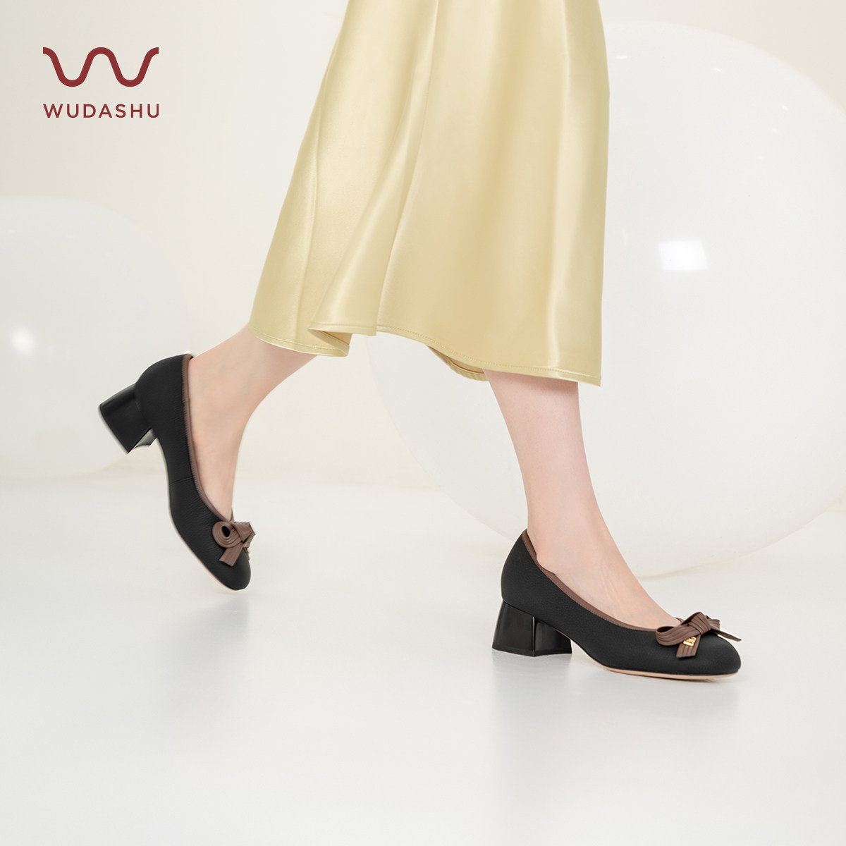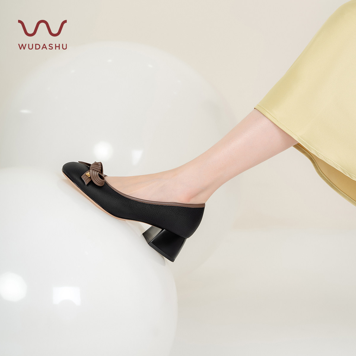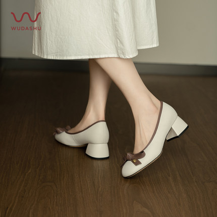 护趾棉系列吴大叔2025秋冬通勤圆头高跟鞋真皮粗跟女鞋时尚单鞋