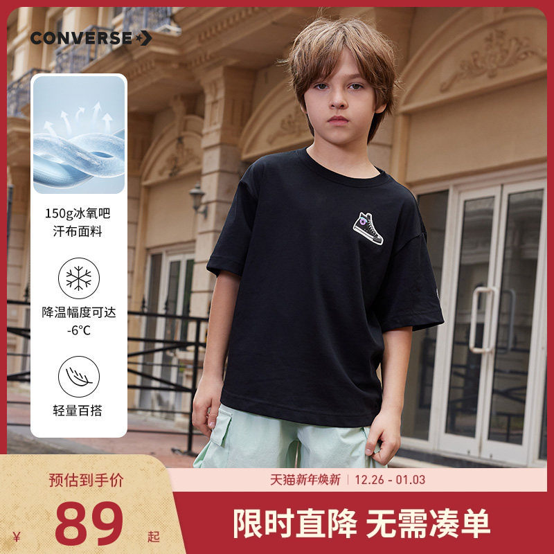 匡威童装2025夏季新款男童短袖T恤中大童女童休闲冰丝透气半袖