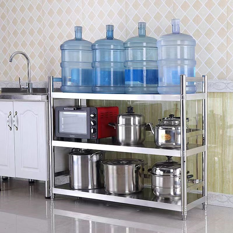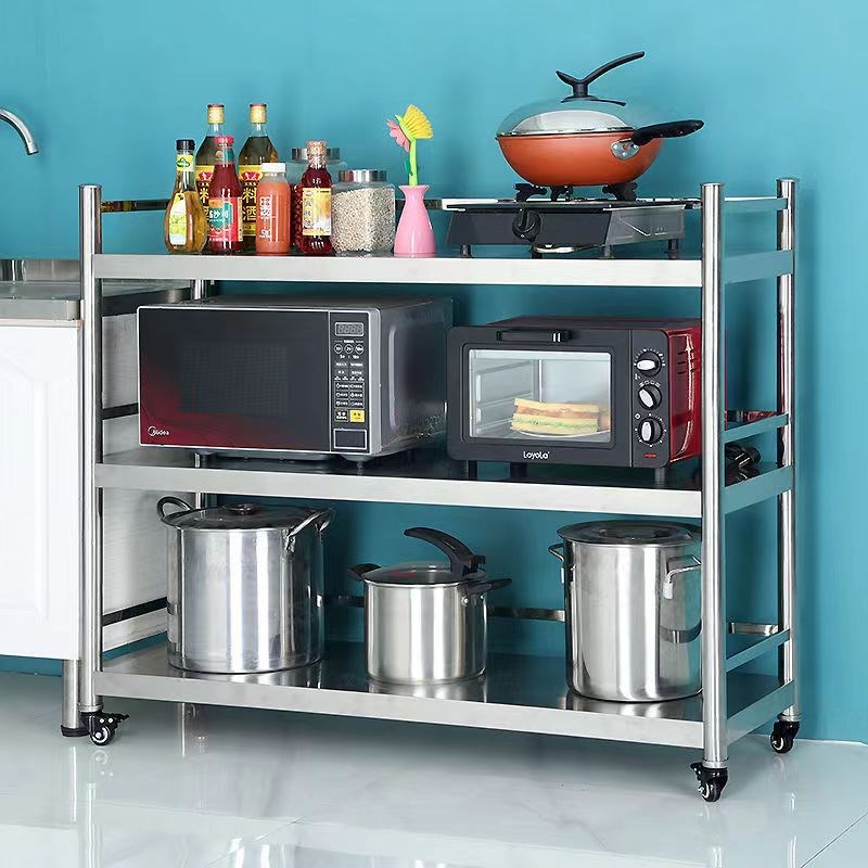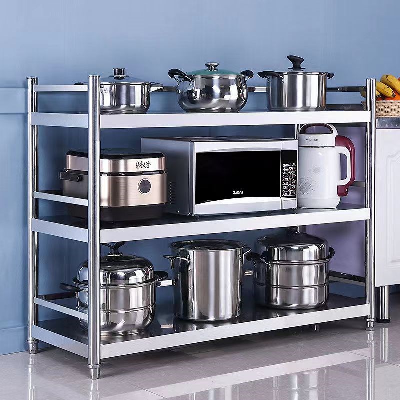 货架厨房置物架不锈钢家用微波炉放锅围挡架子储物架落地带围栏货