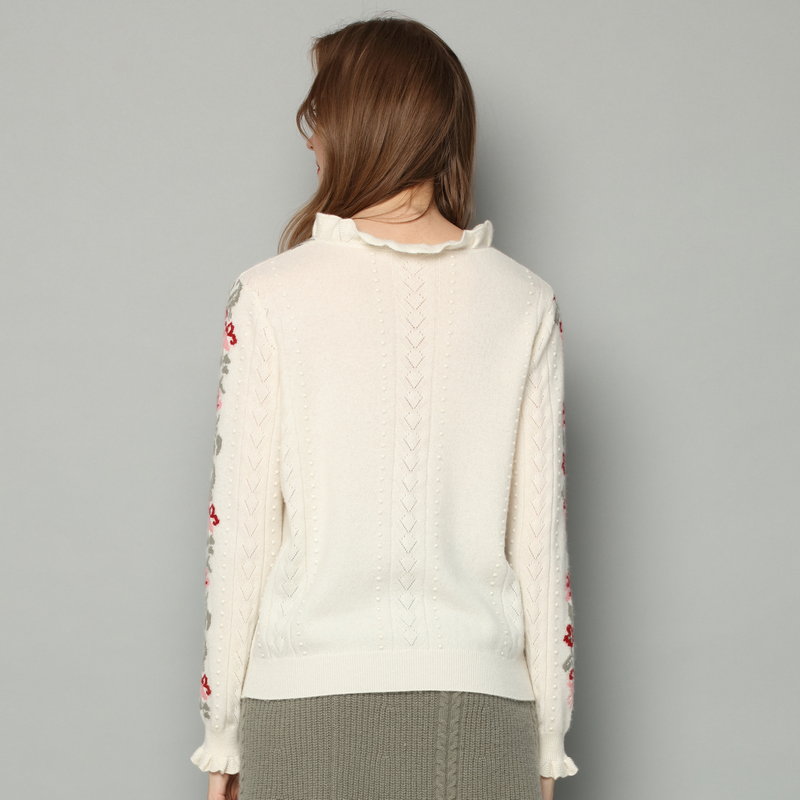 羚荌渼半高领嵌花女羊绒衫简约休闲纯羊绒套头打底毛衣针织衫