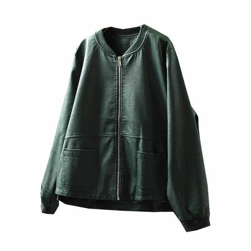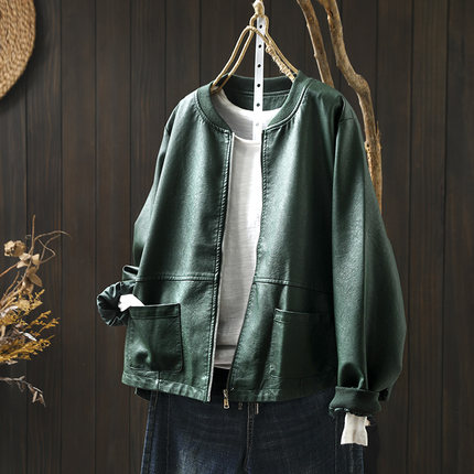 新款春秋宽松立领皮衣外套pu港味