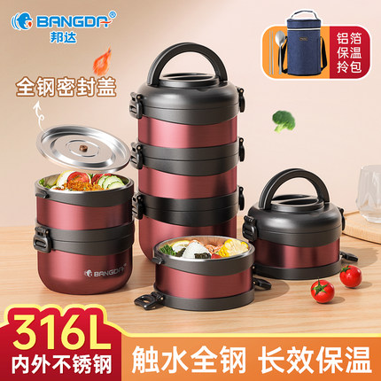316L不锈钢多层保温饭盒学生上班族便当盒餐盒家用超长保温桶便携