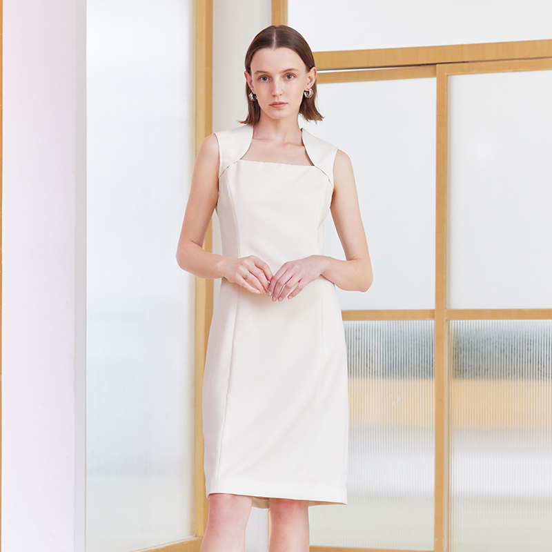 歌莉娅羊毛连衣裙女春秋新款高级感气质通勤白色A字裙子1B1L4K550