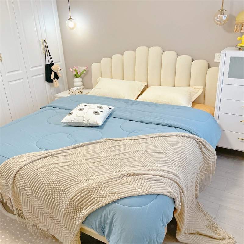 法式奶油风布艺手指双人北欧现代简约网红小户型卧室公主床
