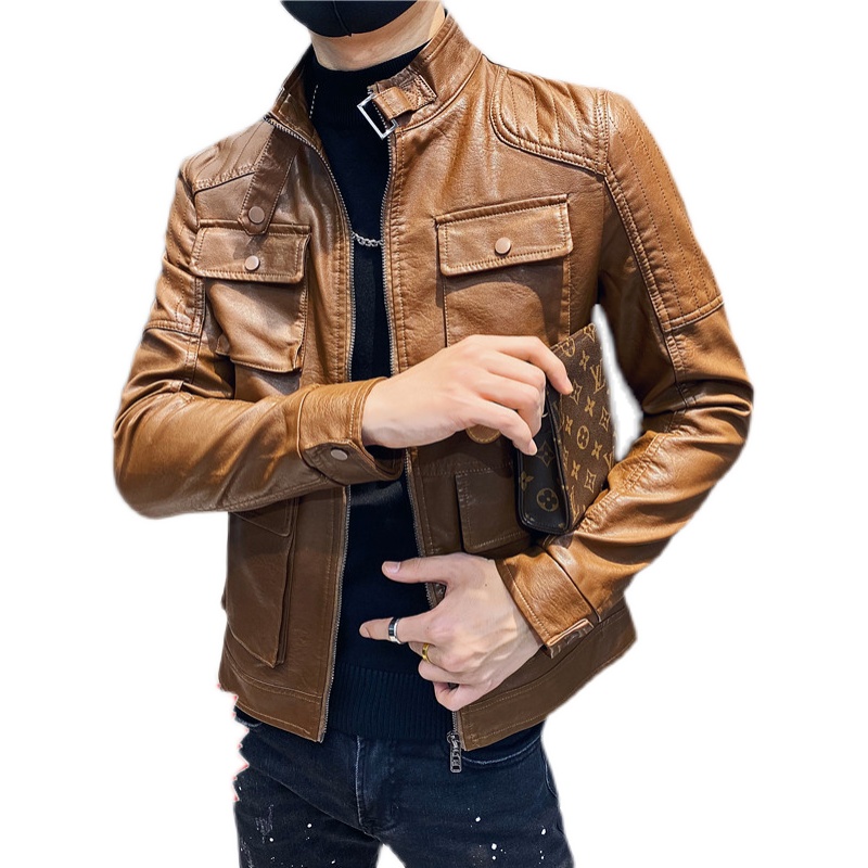 秋冬加绒加厚皮衣夹克男装修身潮牌2025新款精神小伙炸街痞帅外套
