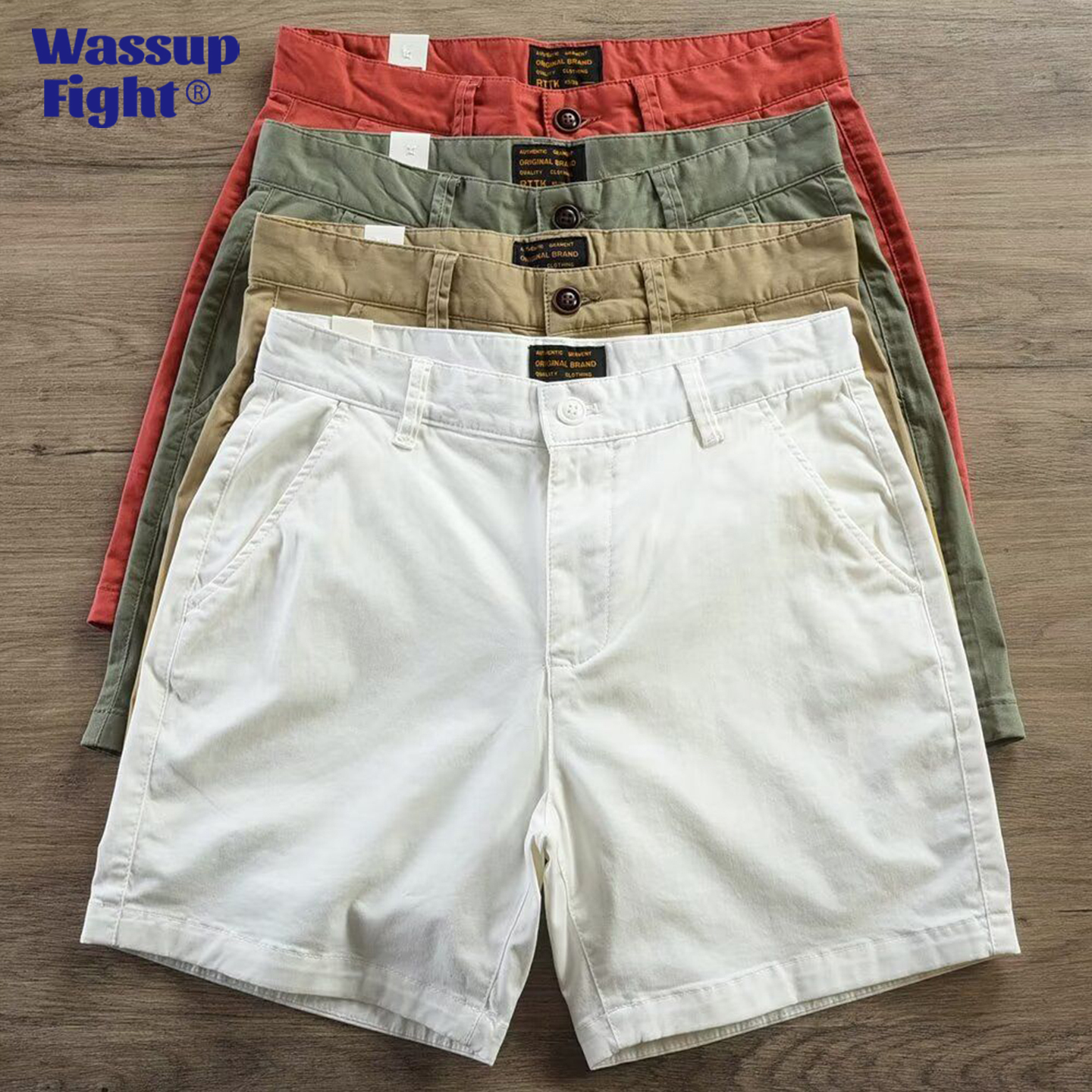 WASSUP 2025新款夏季男士美式全棉透气西装休闲外穿4分裤白色短裤