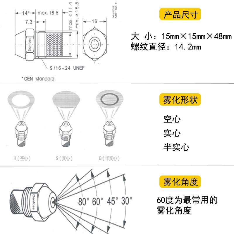 甲醇柴油植物油喷咀danfoss丹佛斯喷油嘴灶具燃烧器黄铜60度实心