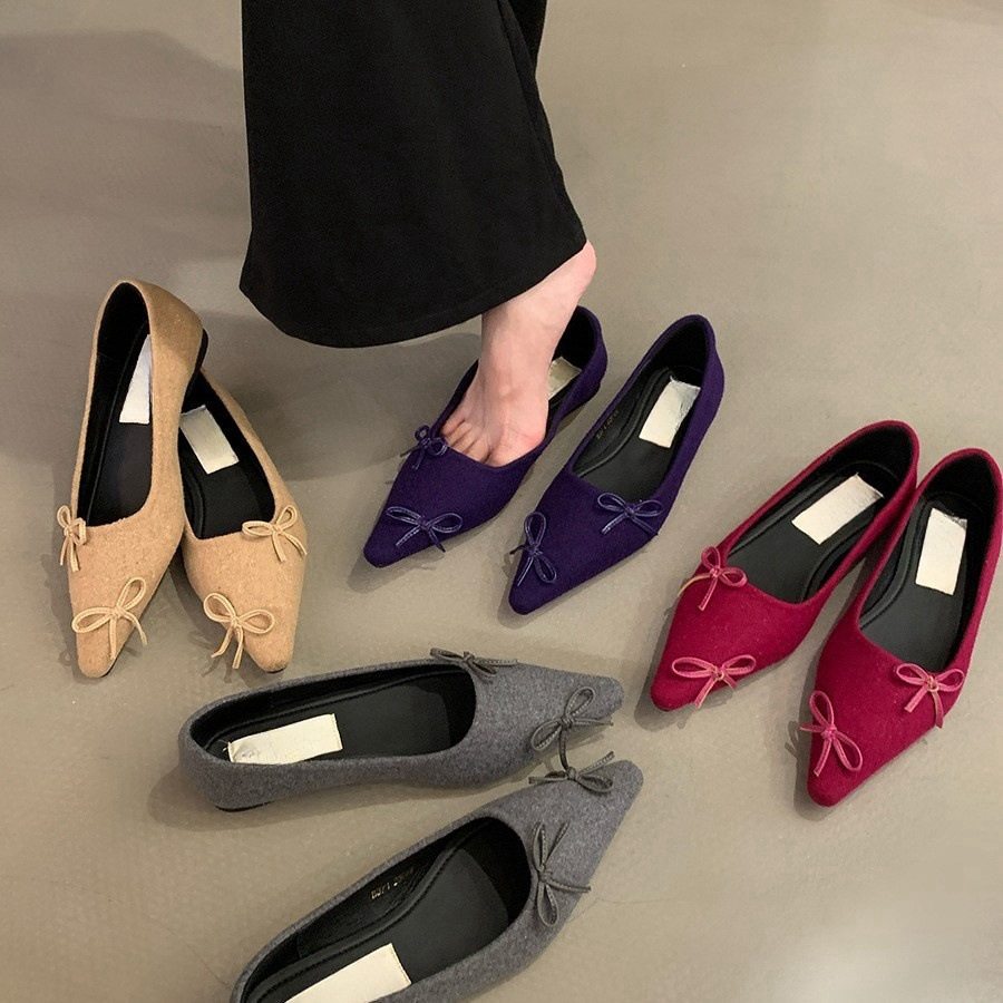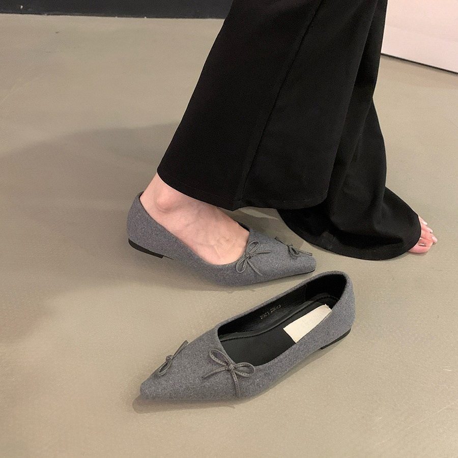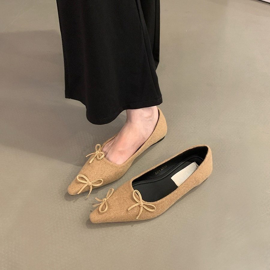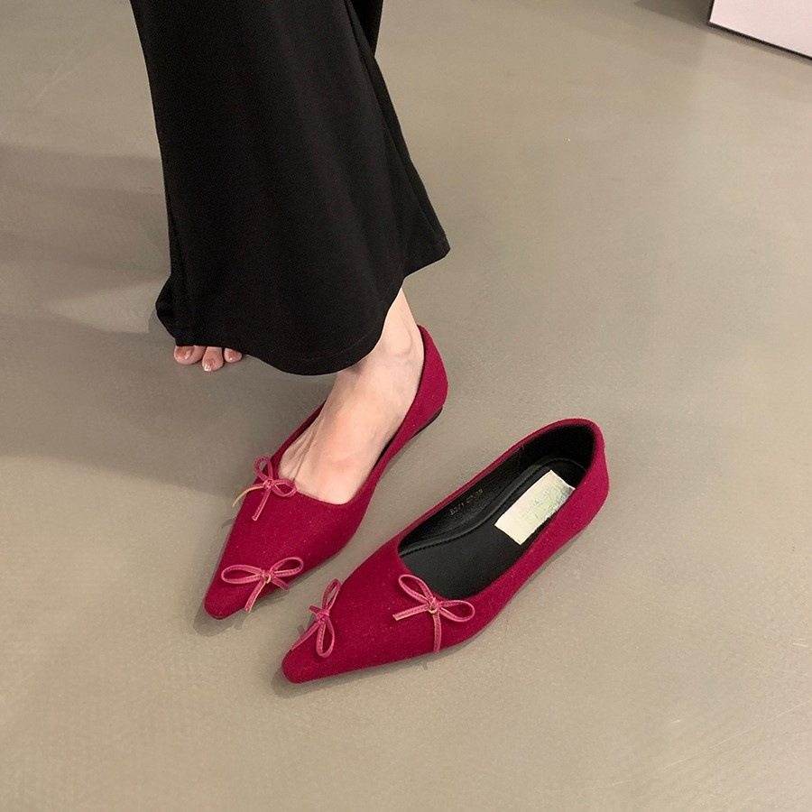 法式复古平底豆豆单鞋2024年新款气质尖头浅口蝴蝶结温柔晚晚鞋女