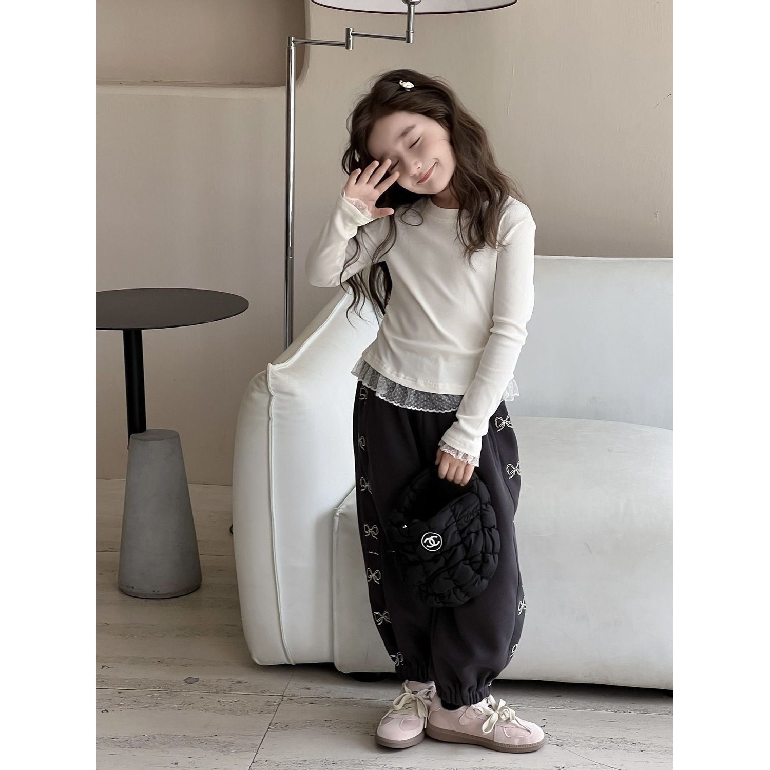 中大童女童打底衫2025秋装花边儿童韩版洋气T恤宝宝蕾丝长袖上衣