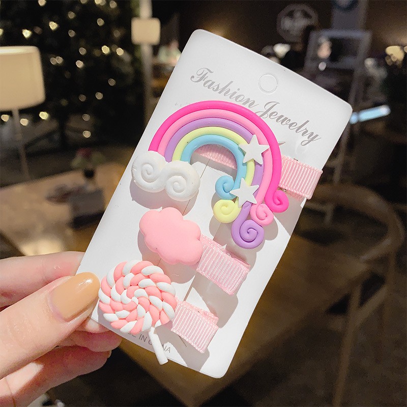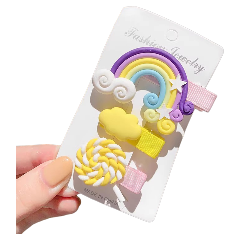 儿童彩虹发夹可爱云朵棒棒糖侧边夹女孩鸭嘴夹边夹少女发卡饰品