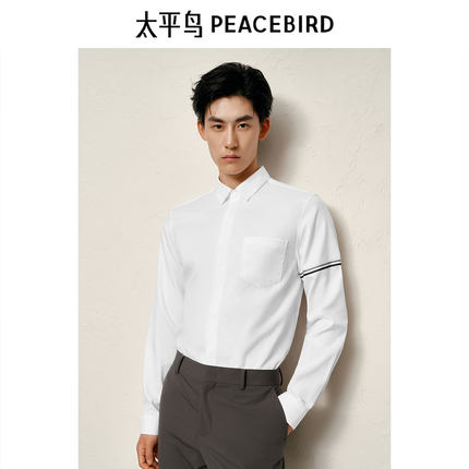 太平鸟男装条纹休闲白色衬衣