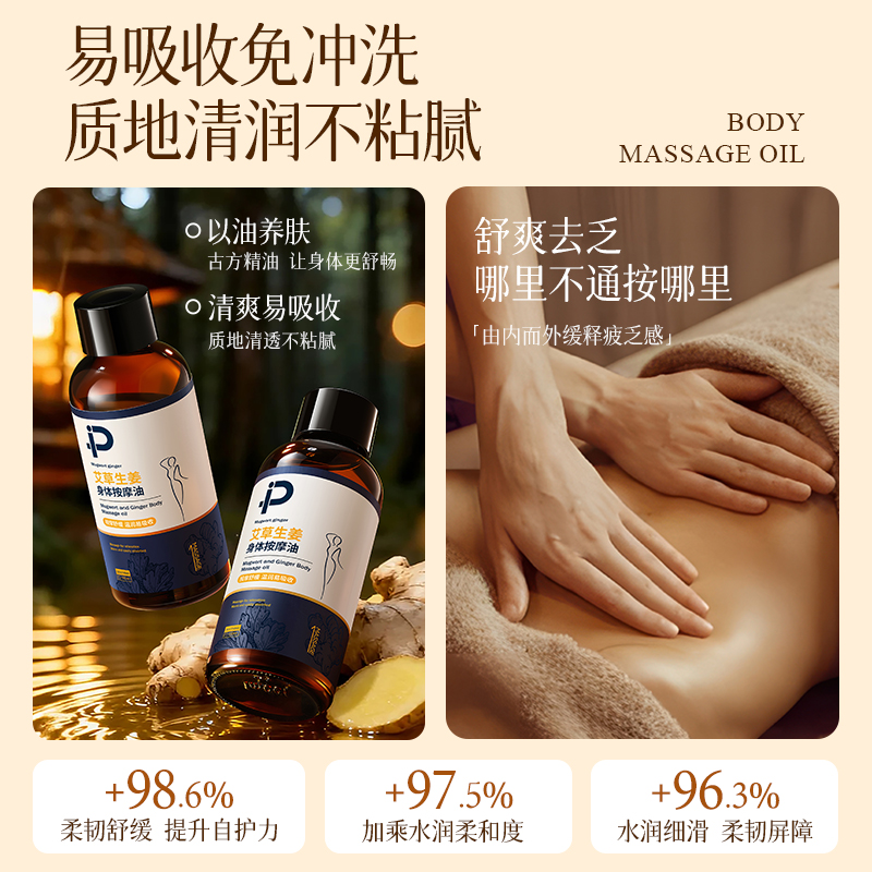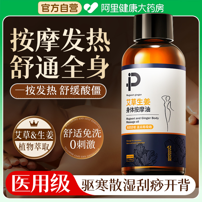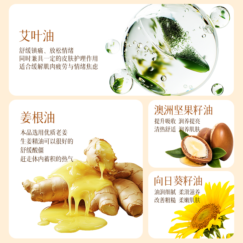 生姜艾草发热按摩精油全身身体通经络开背推拿背刮痧去湿寒气专用