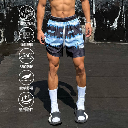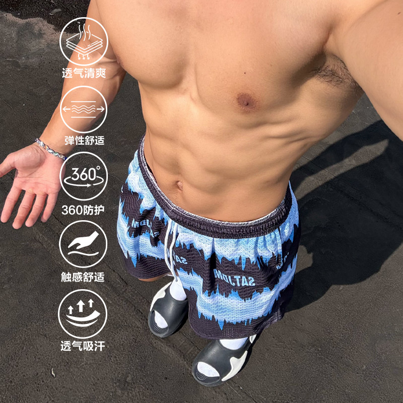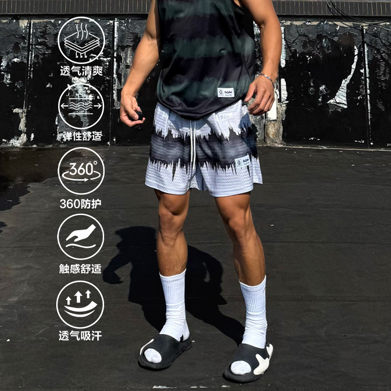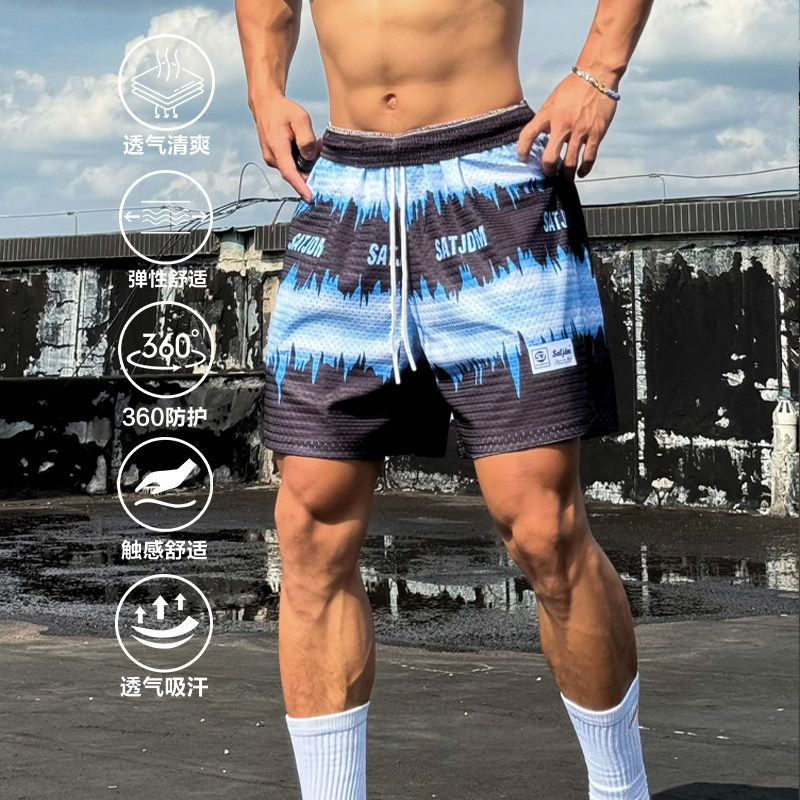 Satjdm原创短裤美式四分裤三分海浪系列篮球训练运动休闲健身国潮