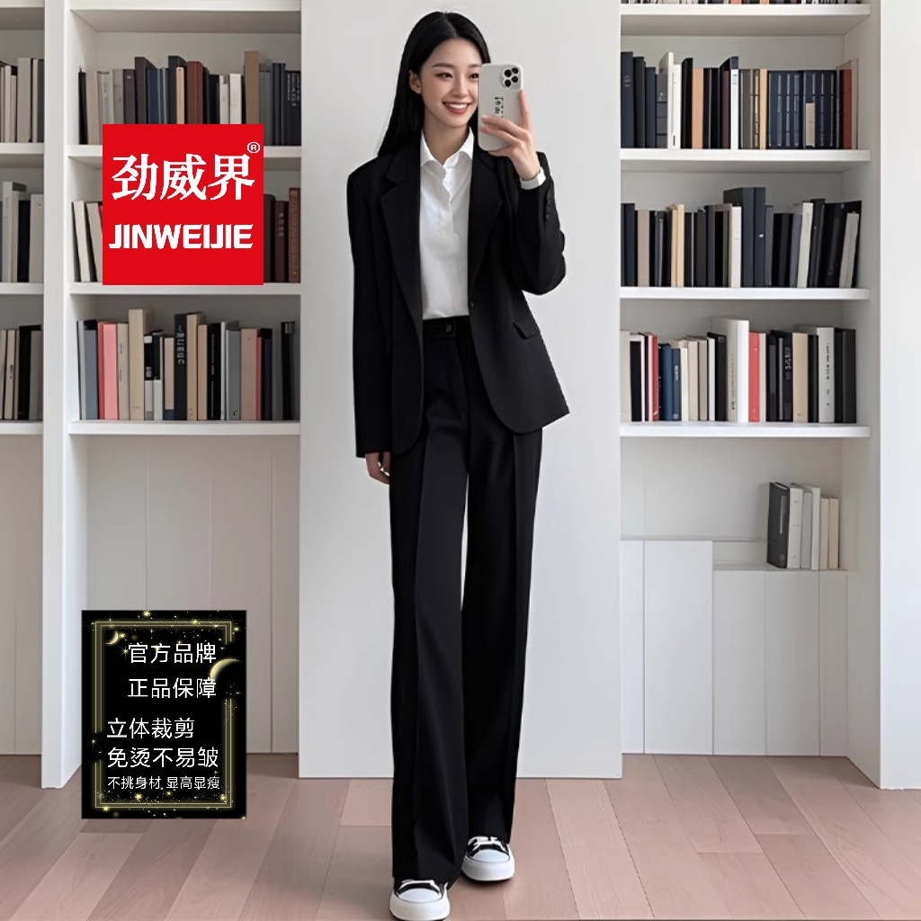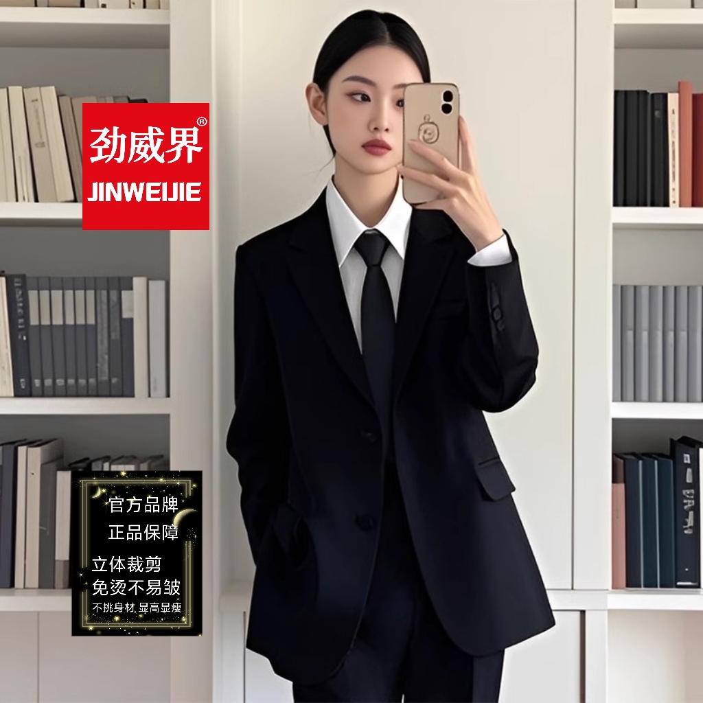 劲威界正装女套装大学生面试考公务员黑色二粒扣休闲西装外套工作