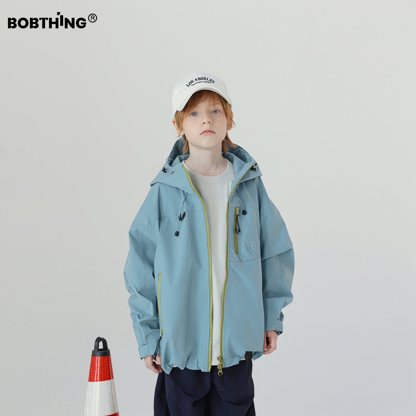 男童秋装撞色拉链连帽冲锋衣2025新款儿童春秋开衫轻防水外套童装