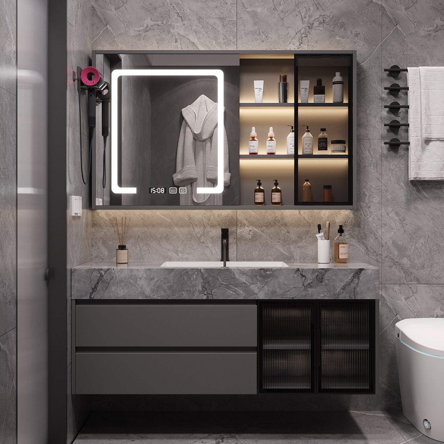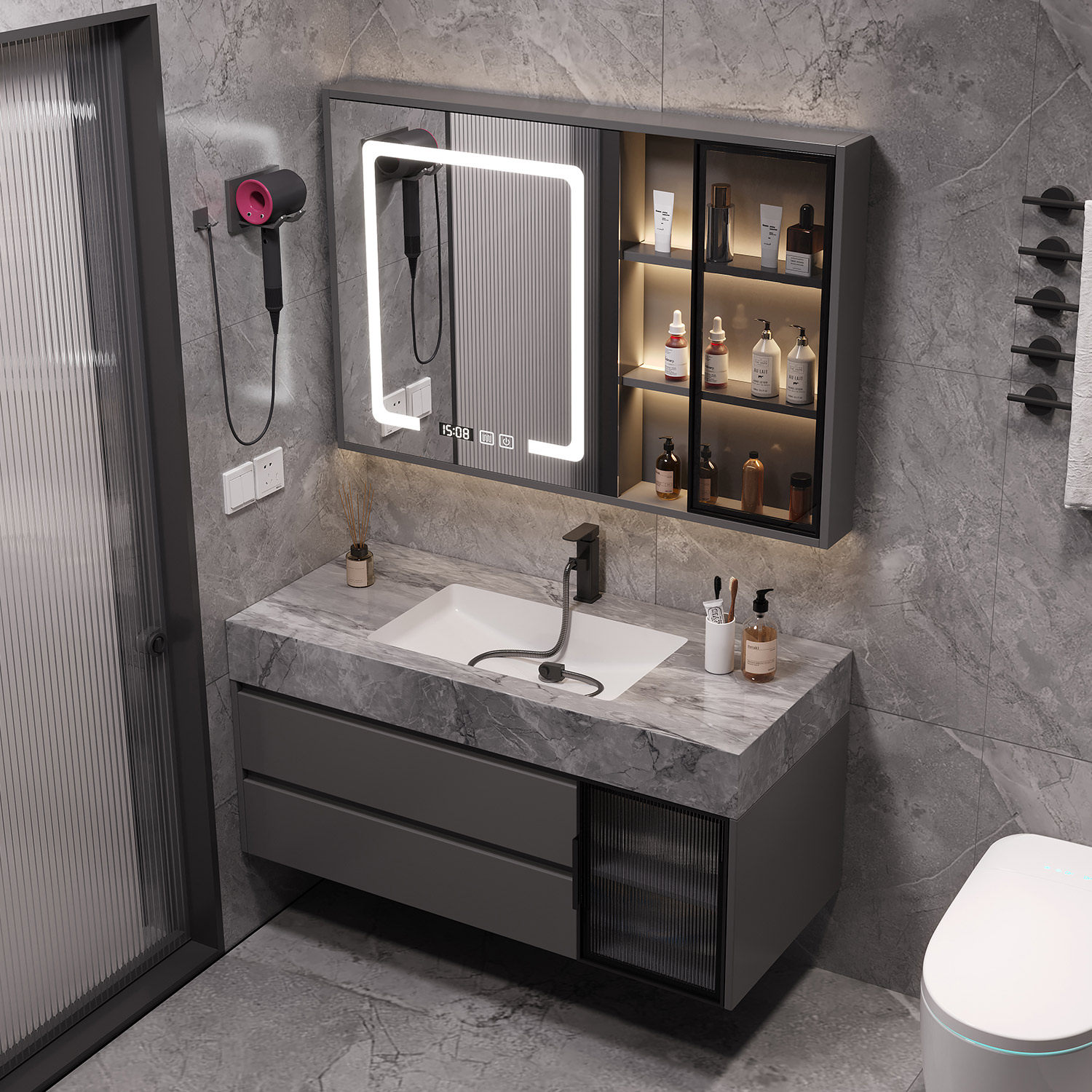 智能浴室柜岩板无缝盆