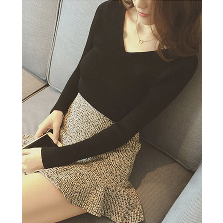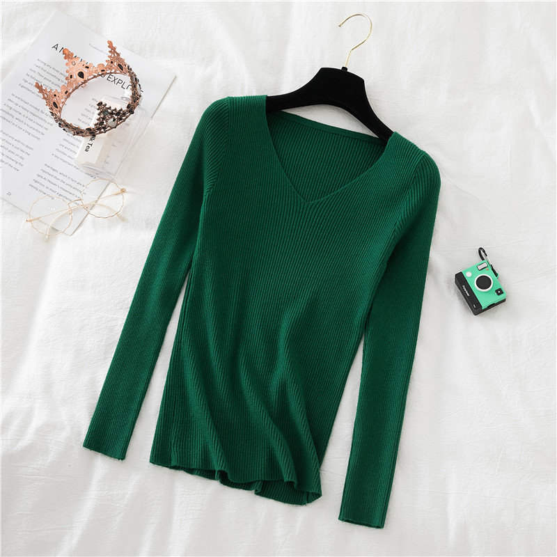 2025秋冬新款V领针织衫修身长袖紧身打底衫显瘦套头内搭毛衣女士