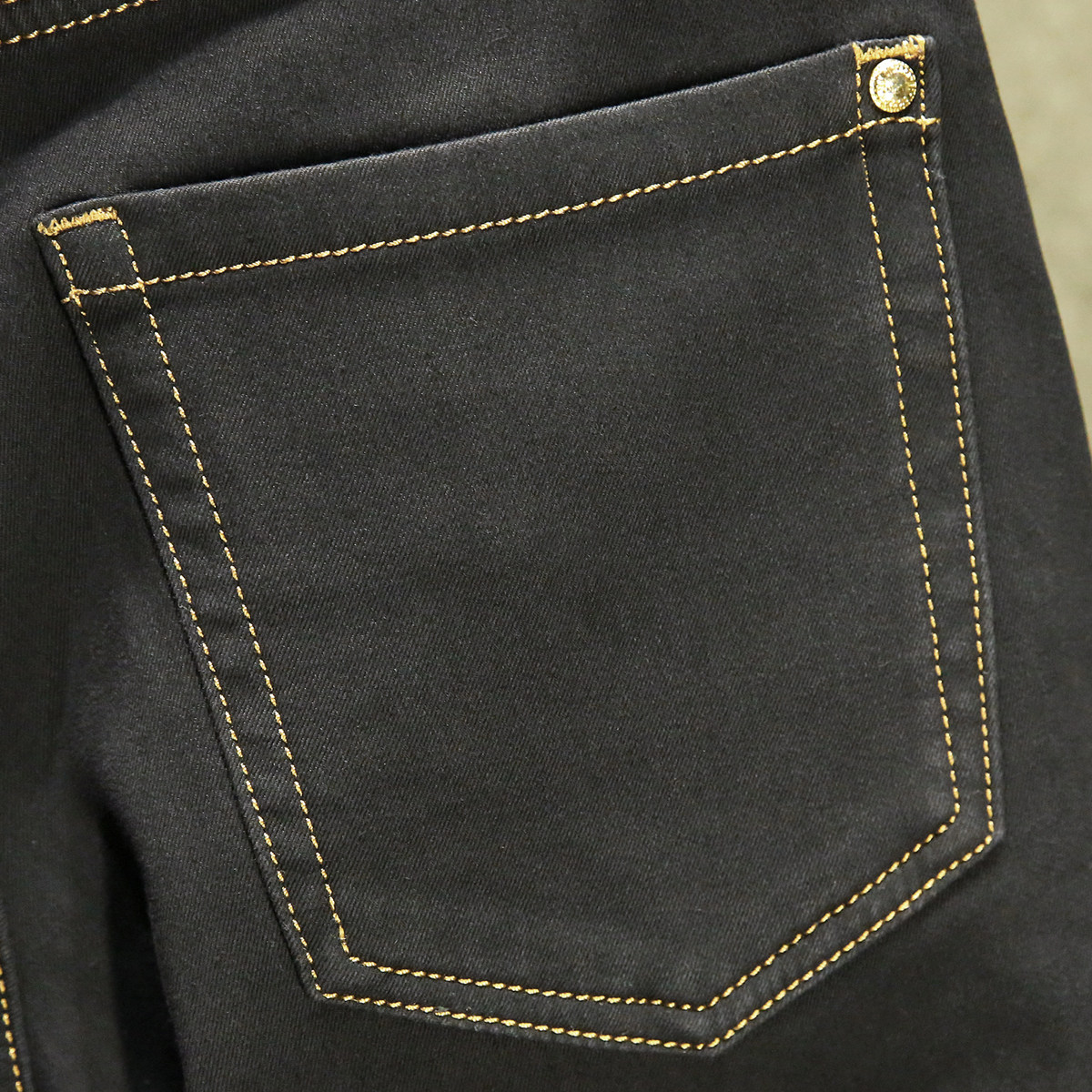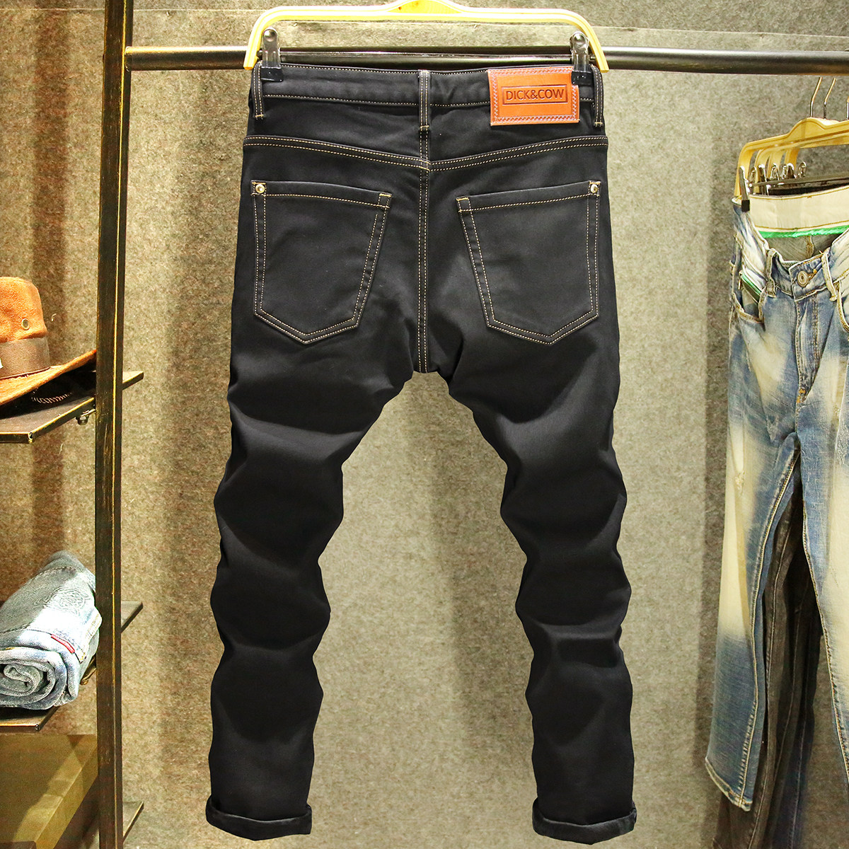 高端2025秋冬黑色加绒牛仔裤男修身小脚裤冬季潮流辑明线休闲裤子