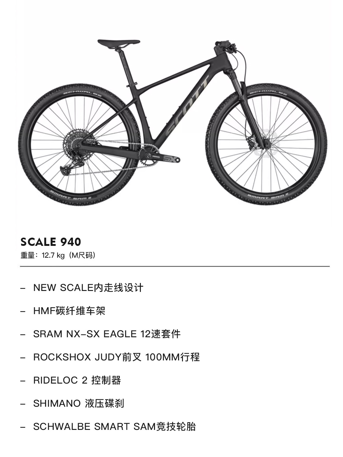 SCOTT斯科特SCALE 940碳纤维内走线越野避减震山地自行车