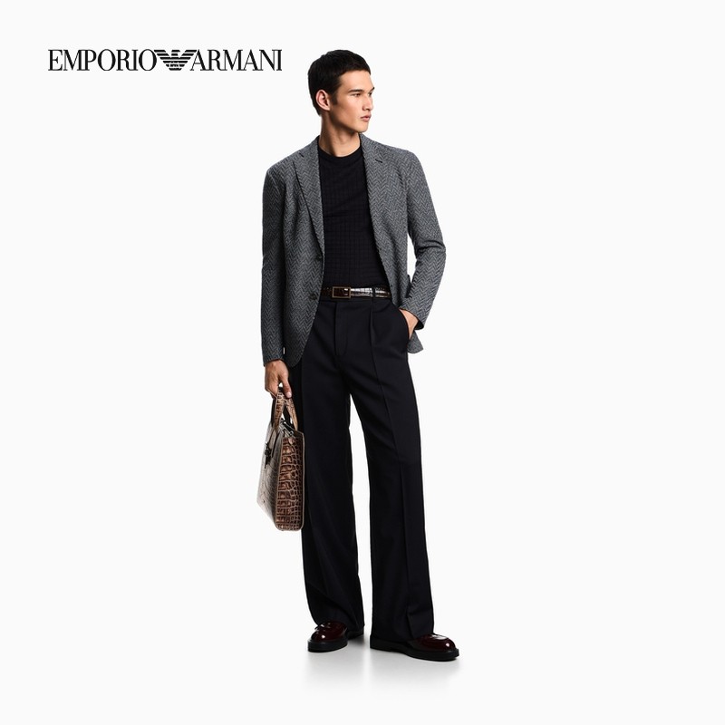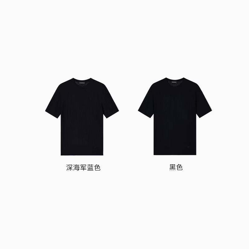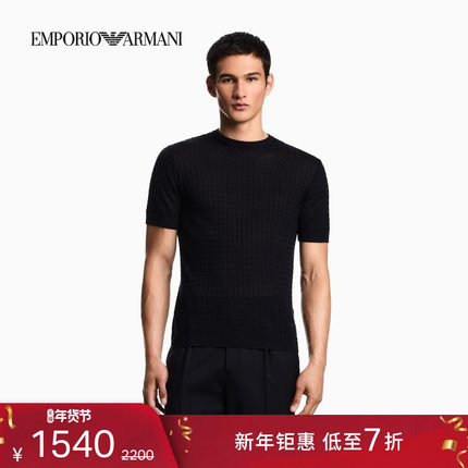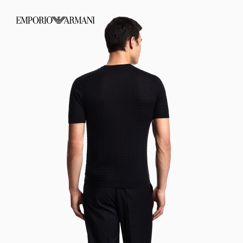 EMPORIO ARMANI/阿玛尼秋冬新款男士圆领混纺商务提花短袖针织衫